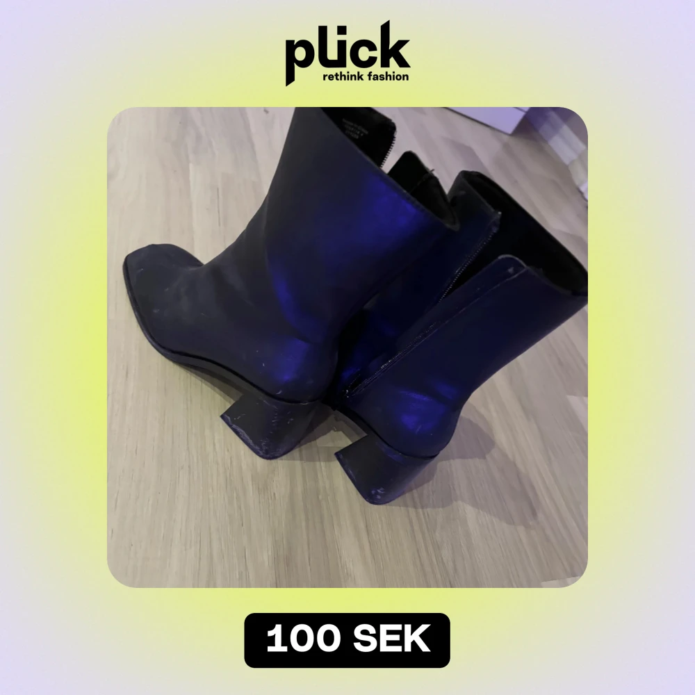 Säljer ett par svarta boots i skinn med klack och dragkedja på sidan. Perfekta för höst och vinter, dessa boots är både stiliga och bekväma. De har en robust design som passar till både vardag och fest.