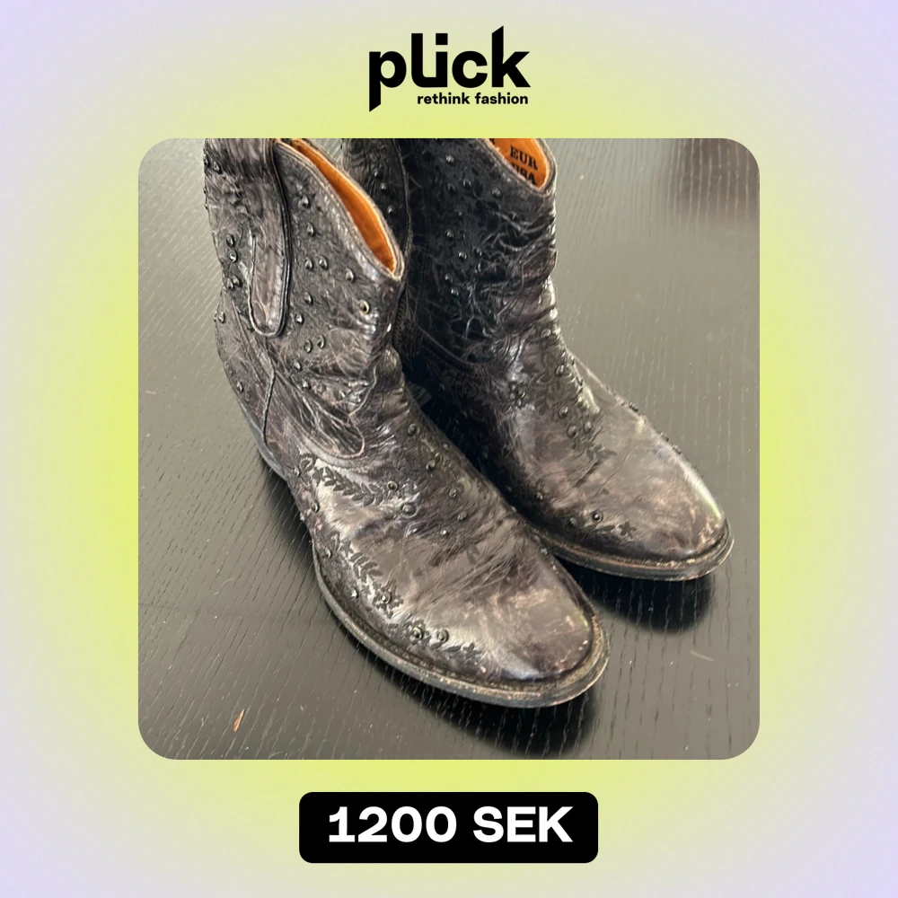 Säljer ett par coola svarta mexicana boots i skinn med strass och dragkedja på sidan. De har en unik textur och är perfekta för höst och vinter. Storlek dam 38. Passar både till vardags och fest!