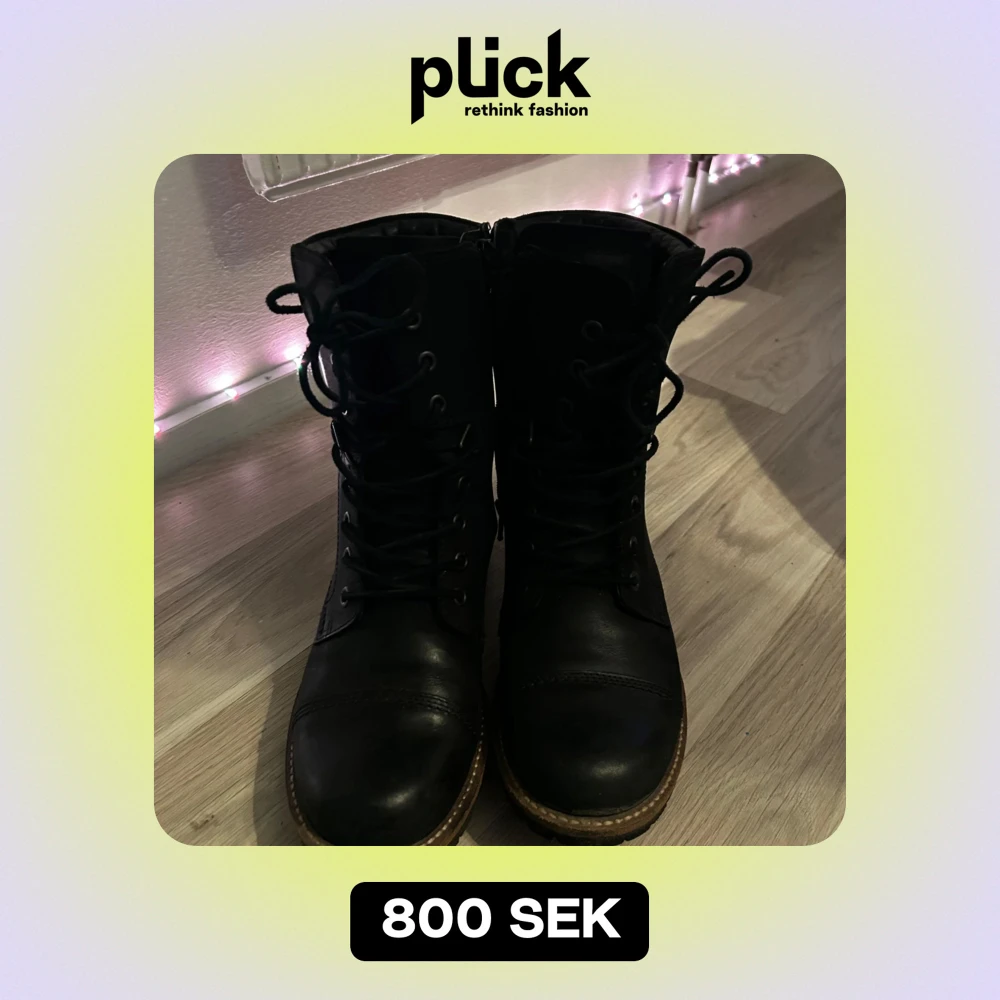Snygga svarta boots i skinn med snörning och dragkedja på sidan. Perfekta för höst och vinter med en robust sula för extra grepp. Stilren design som passar till många olika outfits. ⚠️ Ni betalar för frakt⚠️