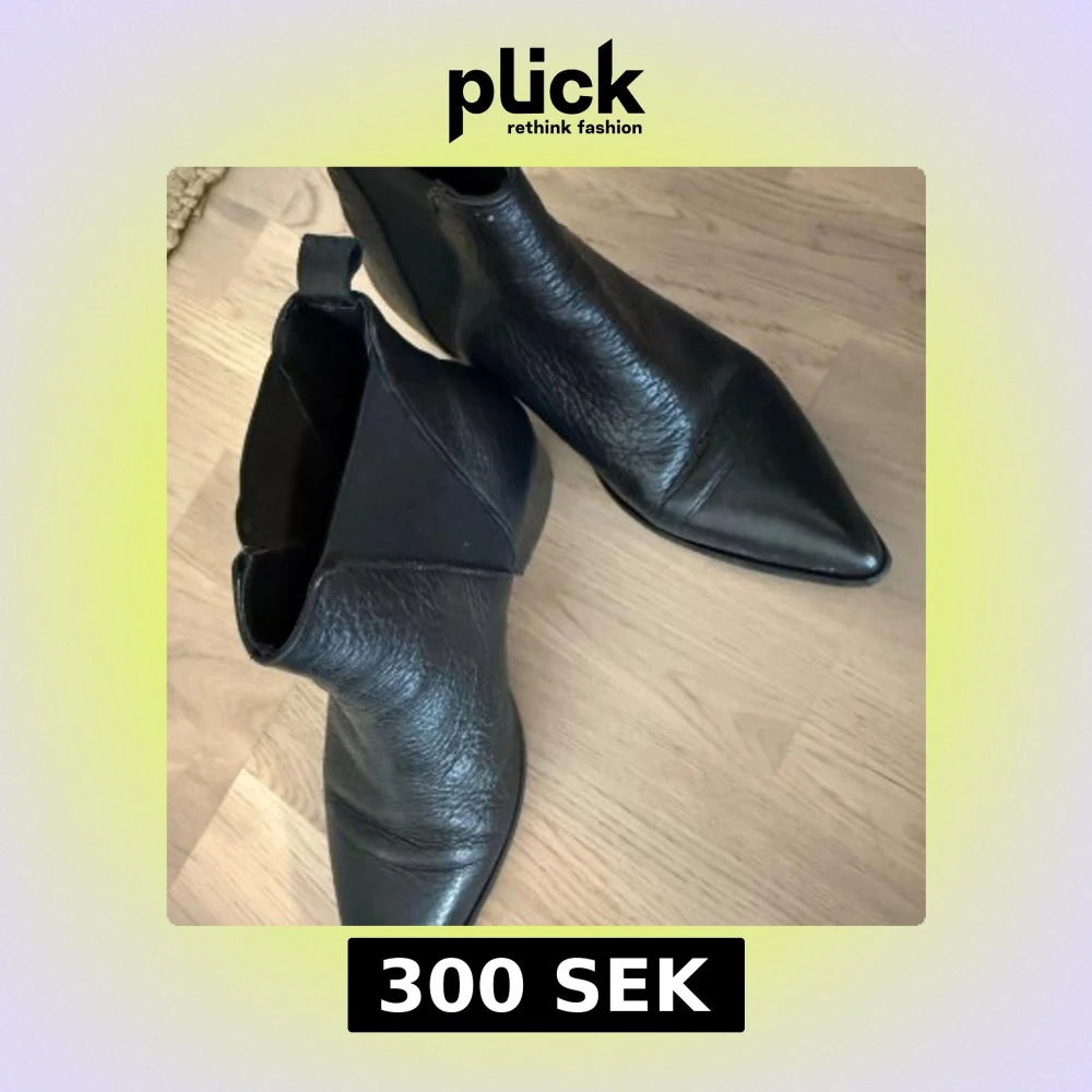 Snygga svarta chelsea boots i skinn med spetsig tå och elastiska paneler på sidorna. Klassisk och stilren modell som passar perfekt till jeans eller kjol. Platt sula och dragflik bak för enkel påtagning.