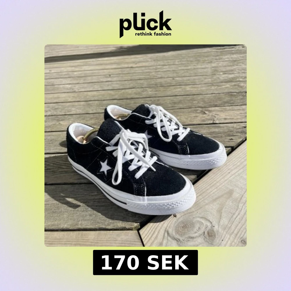 Snygga svarta sneakers med vit stjärna på sidan och vita snören. Jag har använt de 1 gång och har där med bestämt mig för att sälja de då de ej kommer till användning. I storlek 39 men passar även 38, är i mycket fint skick och jag kan tänka mig gå ned i pris vid snabb affär.