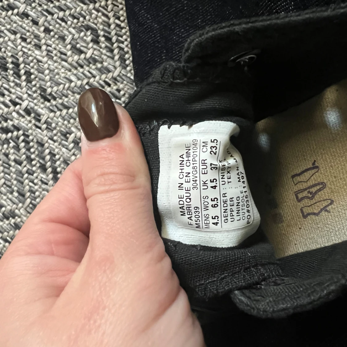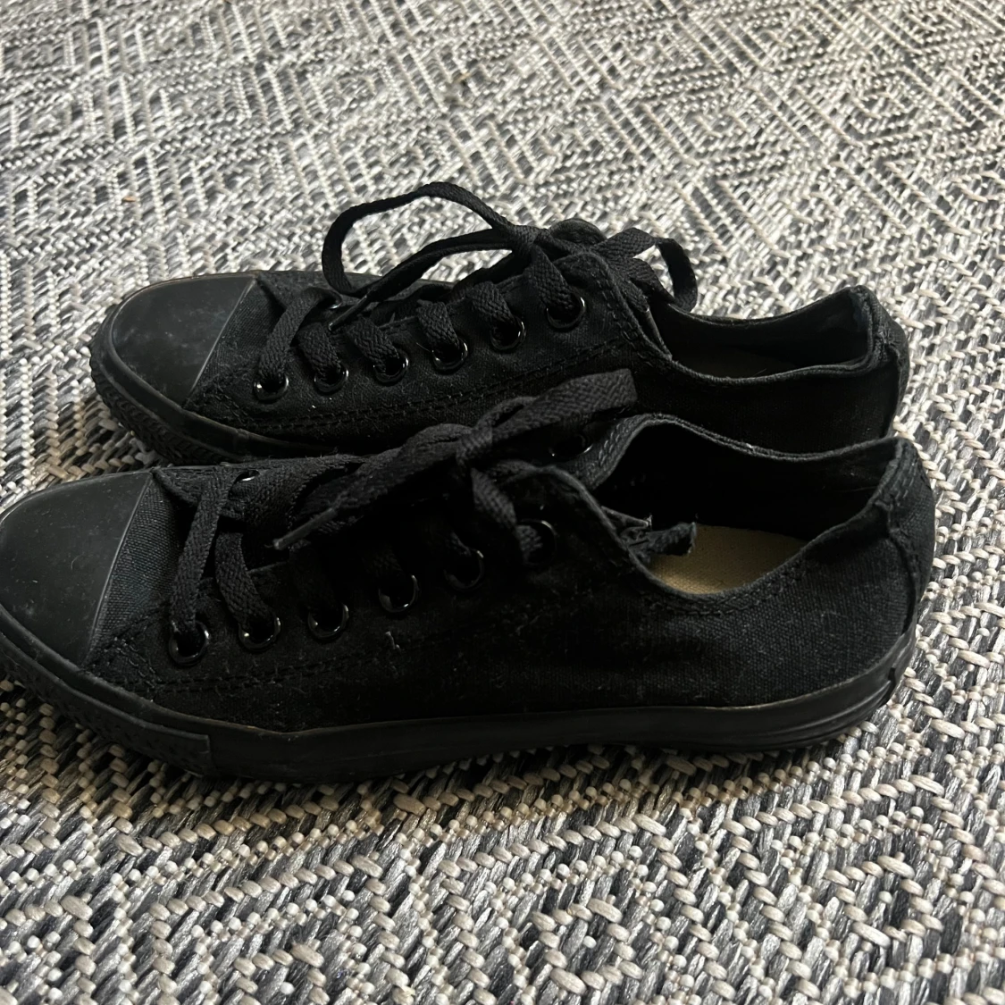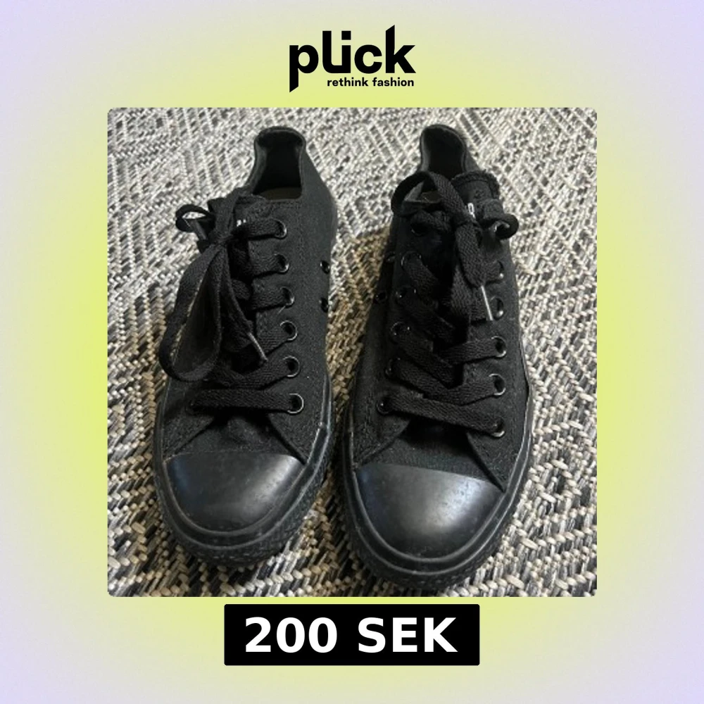 Svarta låga sneakers från Converse, rund tå och platt sula. Skorna har snörning med svarta skosnören och är tillverkade i textilmaterial.
