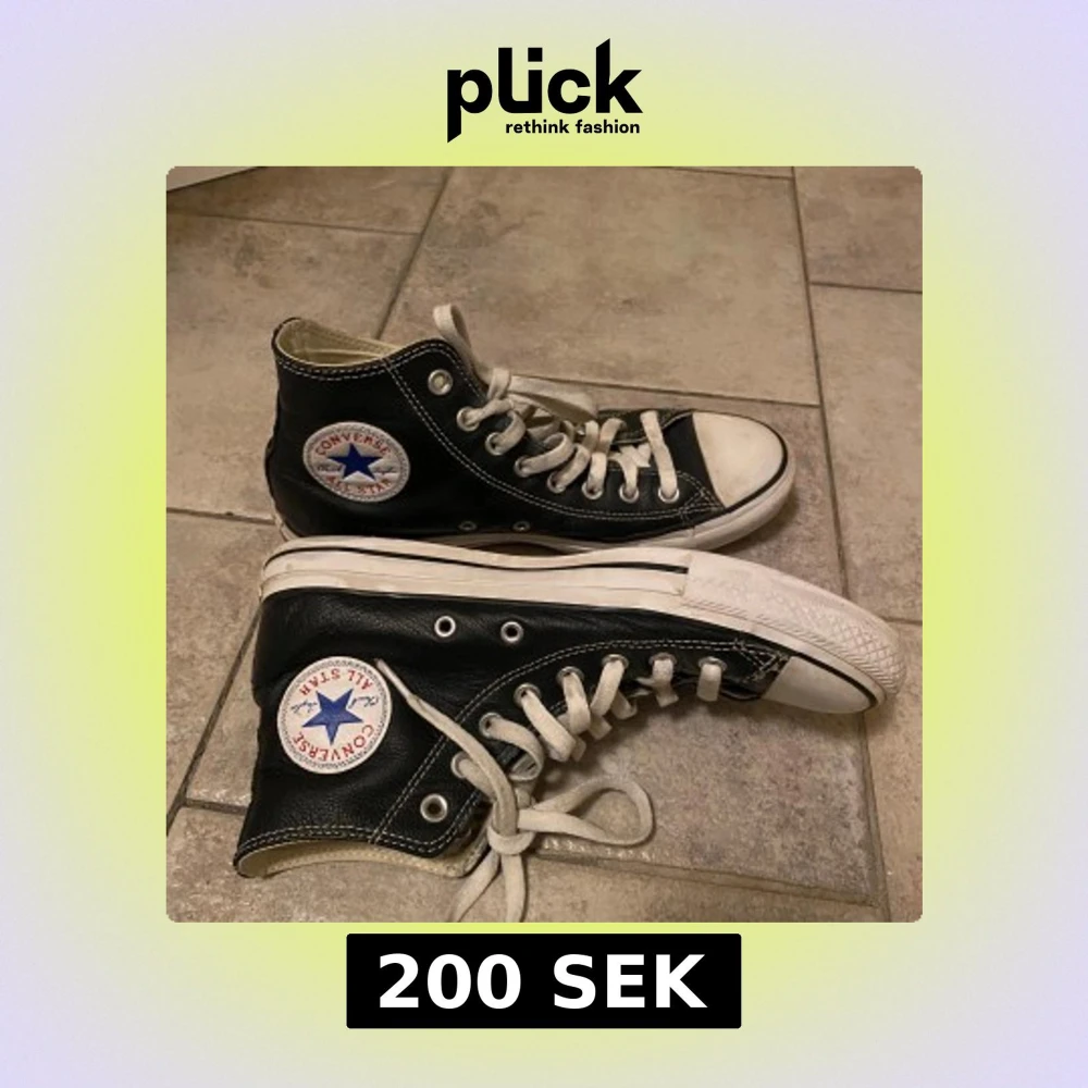 Klassiska svarta Converse All Star sneakers i hög modell med vita snören och sula. Skorna har det ikoniska runda märket på sidan och är perfekta för en avslappnad stil. Passar en bra storlek 40 🥰💞