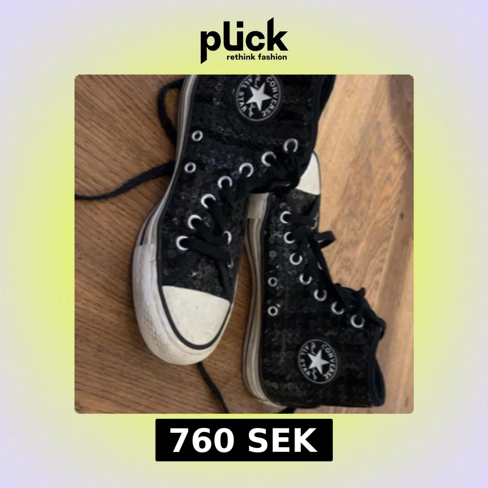 Så coola converse skor med svarta paljetter. Säljs pga för små för mig, strl 36. Använd lite granna men inte alls mycket för jag köpte dem lite för små. Köpte för 1200.