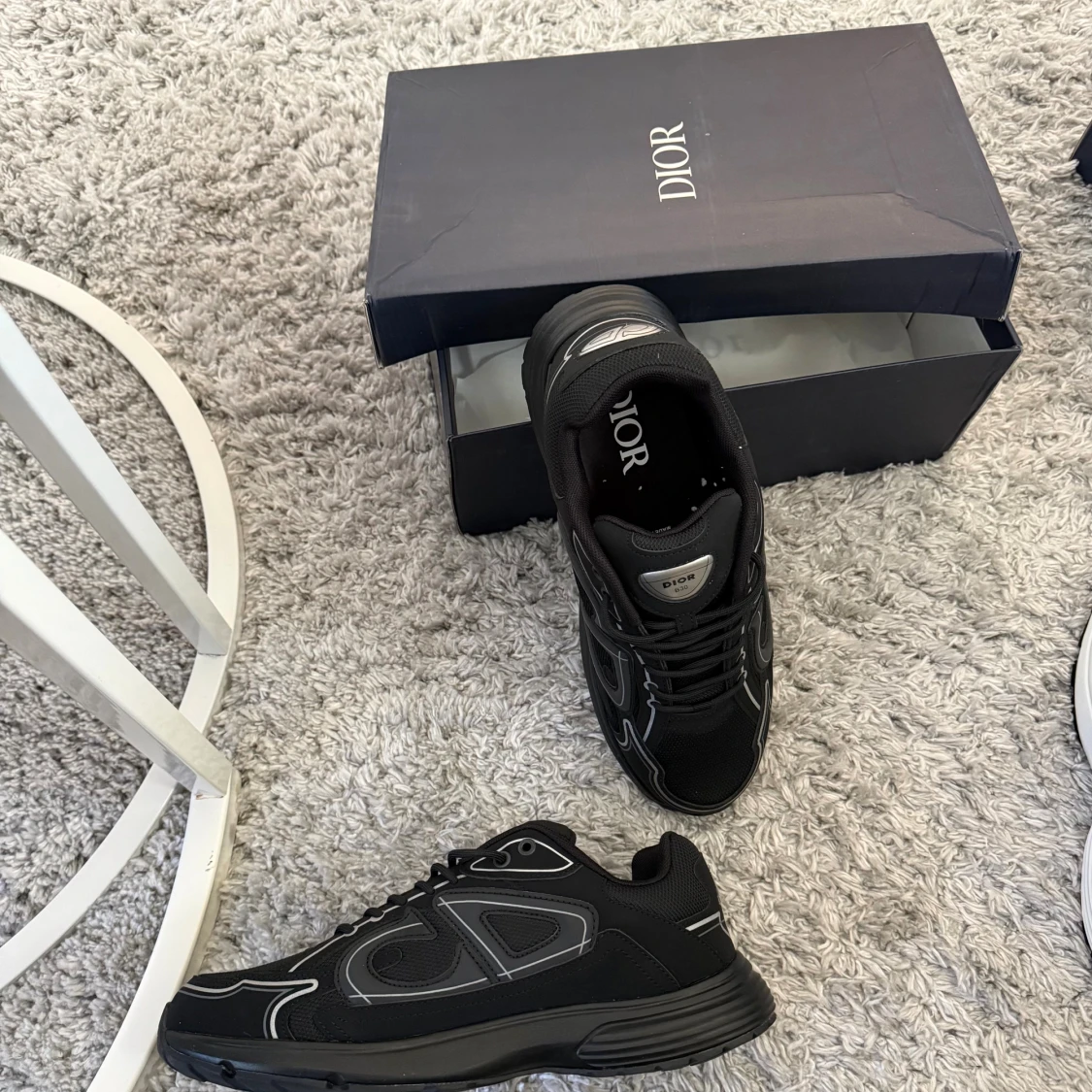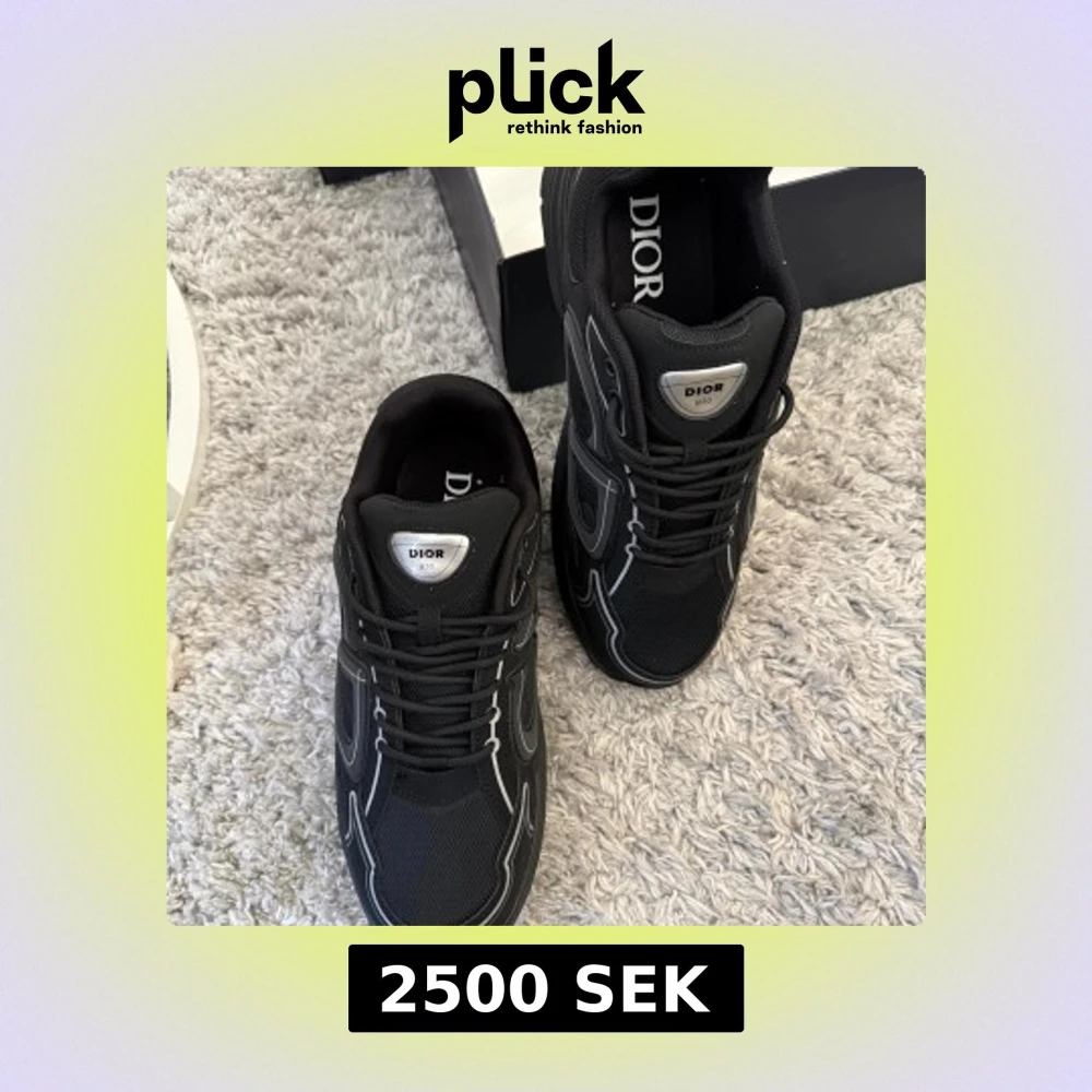 Säljer ett par svarta Dior B30 sneakers med coola reflekterande detaljer och tydlig Dior-logga på plösen. Skorna har en sportig siluett, snörning och är tillverkade i mesh och syntetmaterial för en modern vibe. Perfekta för dig som vill sticka ut med lyxig streetstyle. Med sko lådan