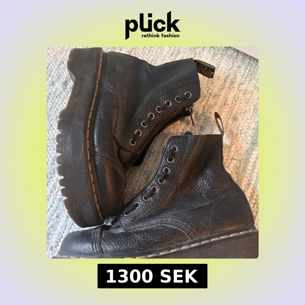 Svarta boots från Dr. Martens i grovt skinn med snörning och dragkedja framtill. Med tjock sula, väldigt bekväma när man gått in dom! Nypris 2500, priset kan diskuteras