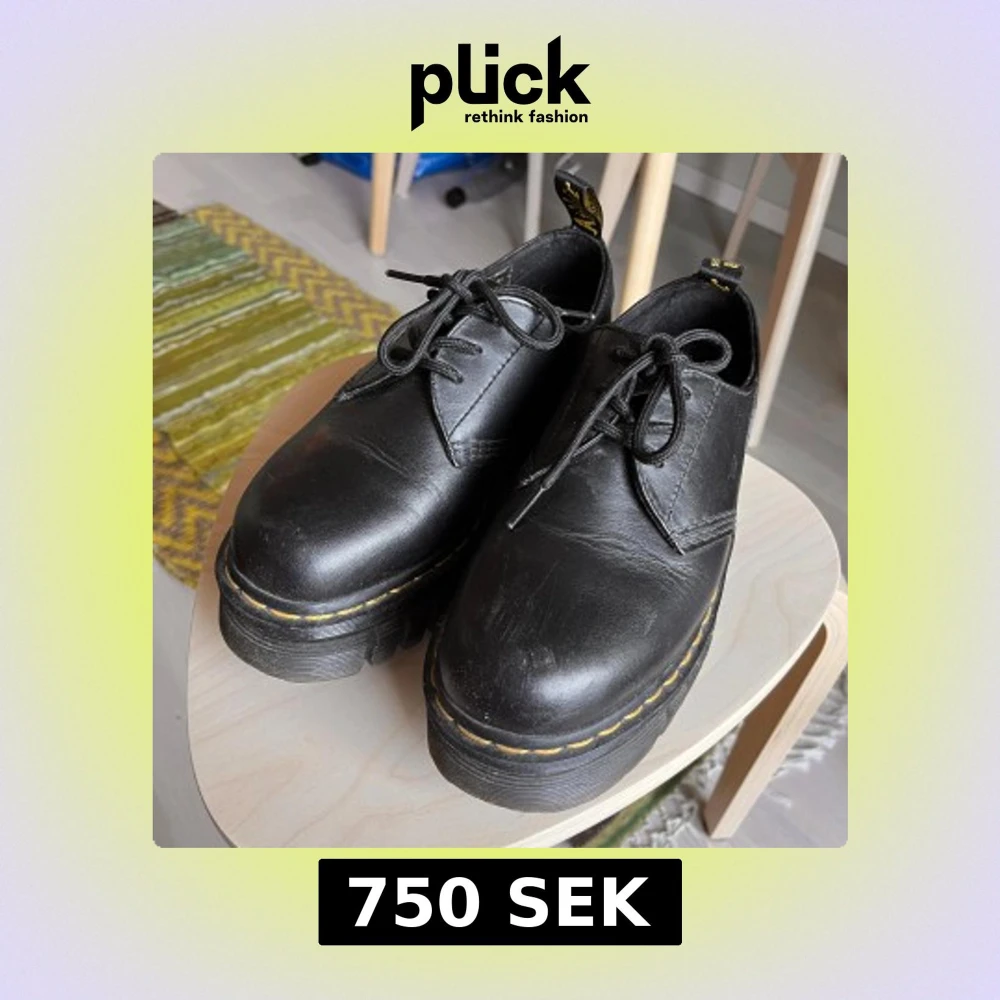 Klassiska svarta Dr. Martens i strl 38 i skinn. Använd fåtal gånger, fint skick. Platå skor, så du får några cm i dem!