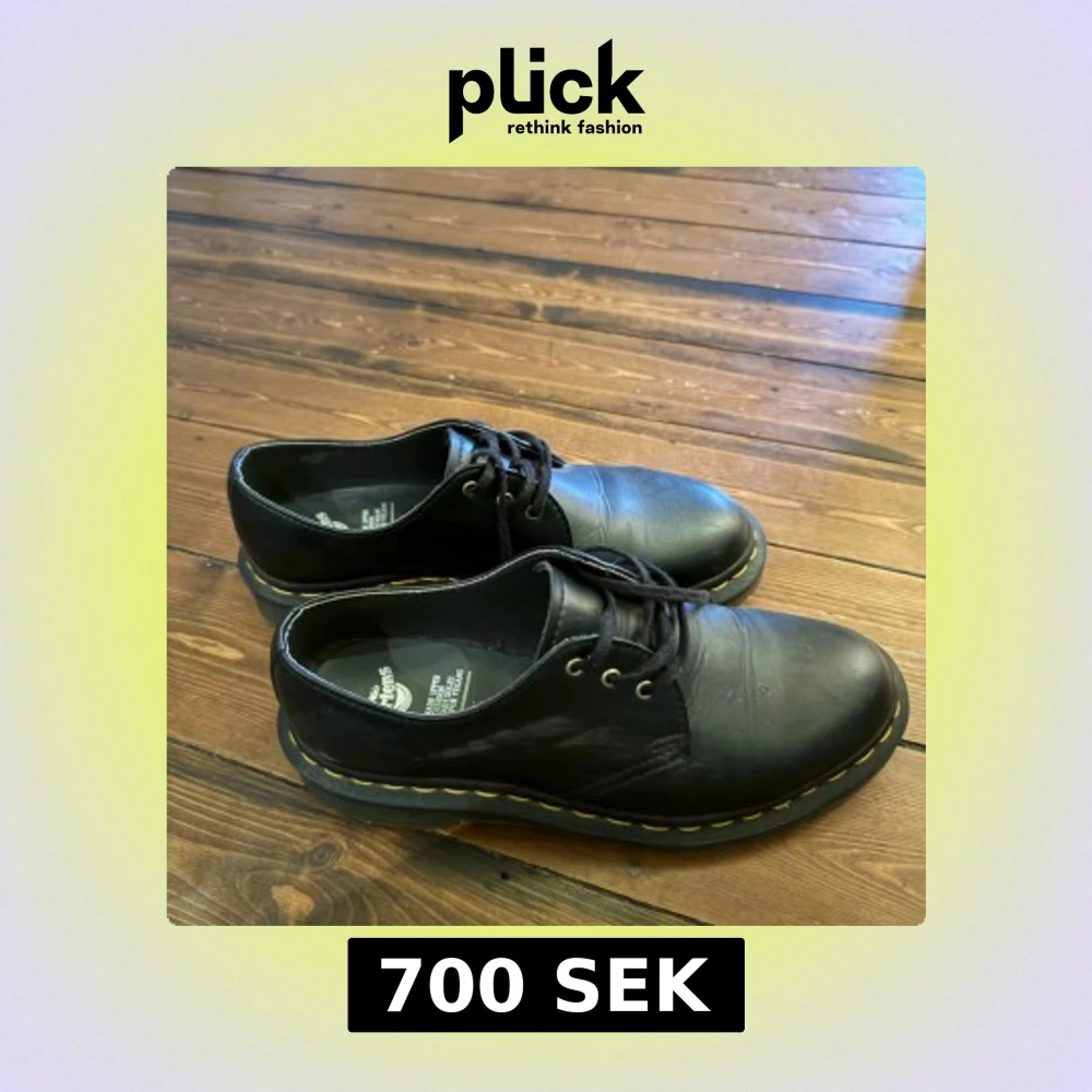 Säljer dessa klassiska svarta Dr. Martens i storlek 38, lite midre i storleken dock. Skorna är tillverkade i syntetmaterial och har den ikoniska gula sömmen runt sulan. Luftdämpad sula för extra komfort och slitstyrka. Passar dig som vill ha en stilren och tidlös look.