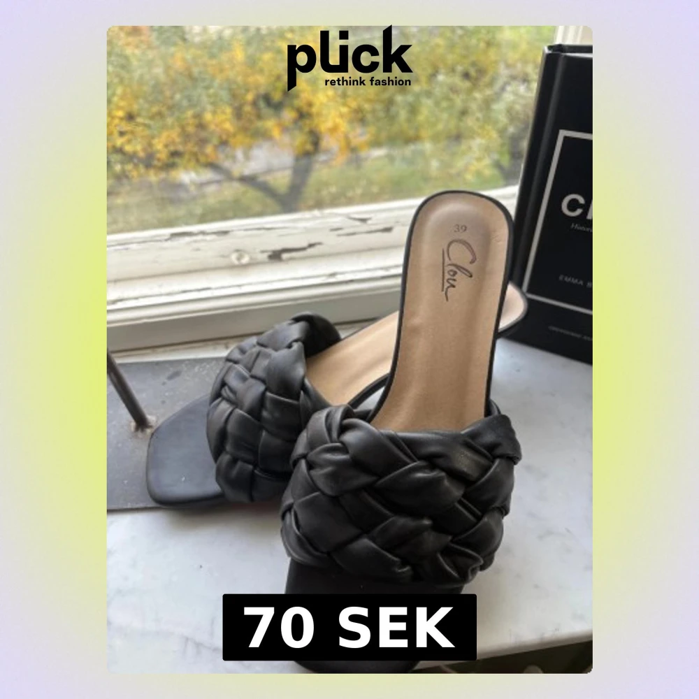 Snygga svarta sandaler från Clou med breda, flätade remmar i skinnimitation och fyrkantig tå. De har en låg klack och öppen häl, vilket ger en trendig och modern vibe. Perfekta för dig som gillar stilrena och coola detaljer.