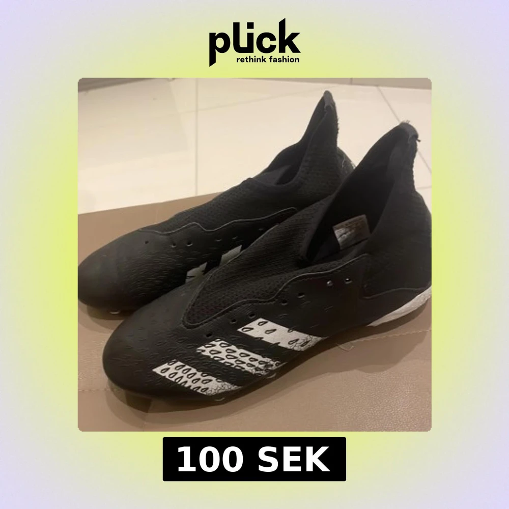 Snygga svarta fotbollsskor från Adidas med vita detaljer och mönster. Skorna har en strömlinjeformad design med snörning och dobbar för bra grepp på planen. Perfekta för fotbollsträning och matcher.