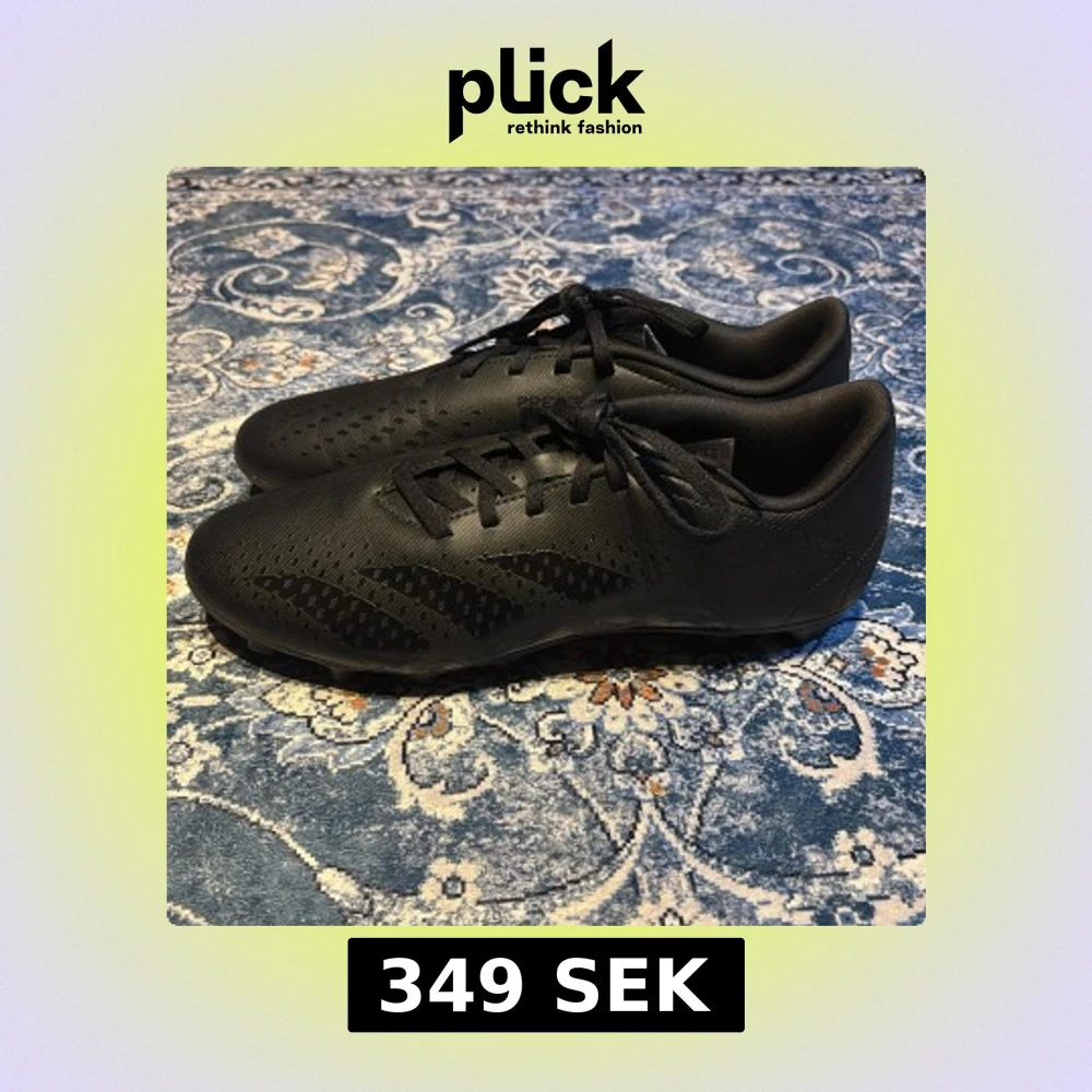 Snygga svarta fotbollsskor från Adidas med snörning och mönstrad sula för optimalt grepp. Perfekta för fotbollsplanen med en stilren design. Dessa skor har aldrig använts säljer de eftersom de var för små för mig, de är i storlek 44 men passar som 43. Vid frågor kontakta