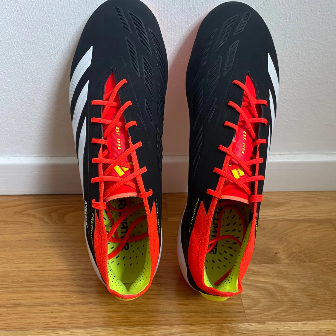 Säljer ett par adidas predator fotbollsskor. De har en bekväm passform och är i gott skick. storlek 43 1/3