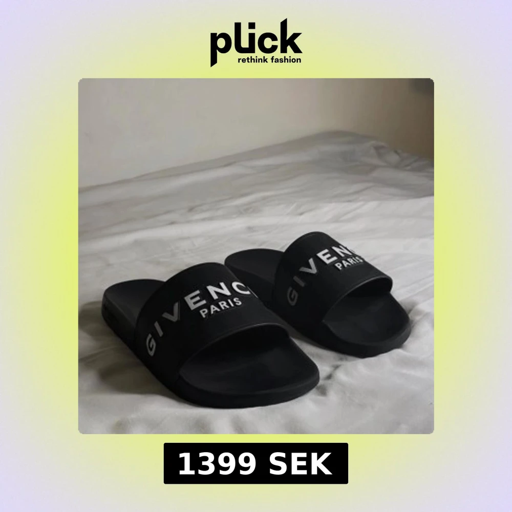 Snygga svarta slides från Givenchy med vit logotyp på ovandelen. Perfekta inför sommaren eller om du ska utomlands. Tillverkade i syntetmaterial för bekvämligheten och hållbarheten.