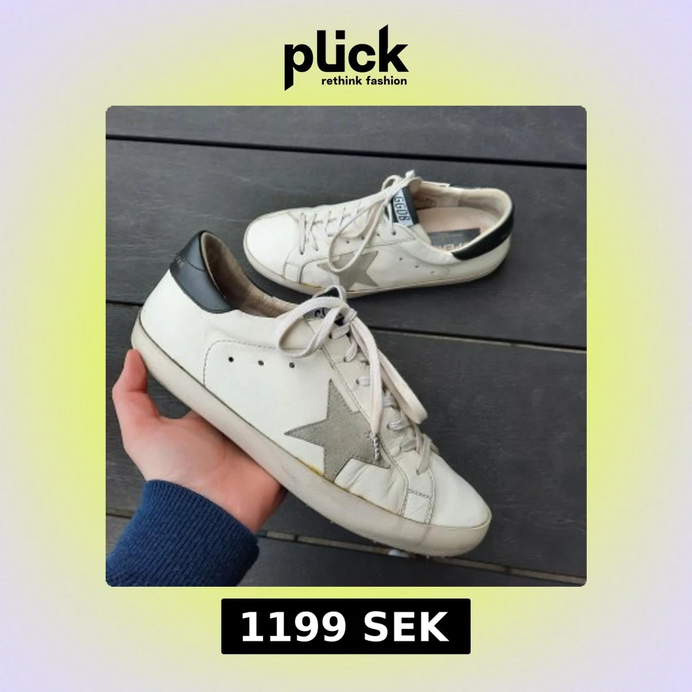 Snygga vita sneakers från Golden Goose med en grå stjärna på sidan och svart häl🌟. Skorna har snörning och en klassisk design som passar perfekt till vardags. Sulan är i gummi och ger bra grepp. Skorna är gjorda i äkta läder och har bra kvalite👞. De är i storlek 42📏 Skorna ingår endast och om du skulle ha vidare frågor eller vill diskutera priset får du jätte gärna skicka ett medelande🙌🤝⚜️