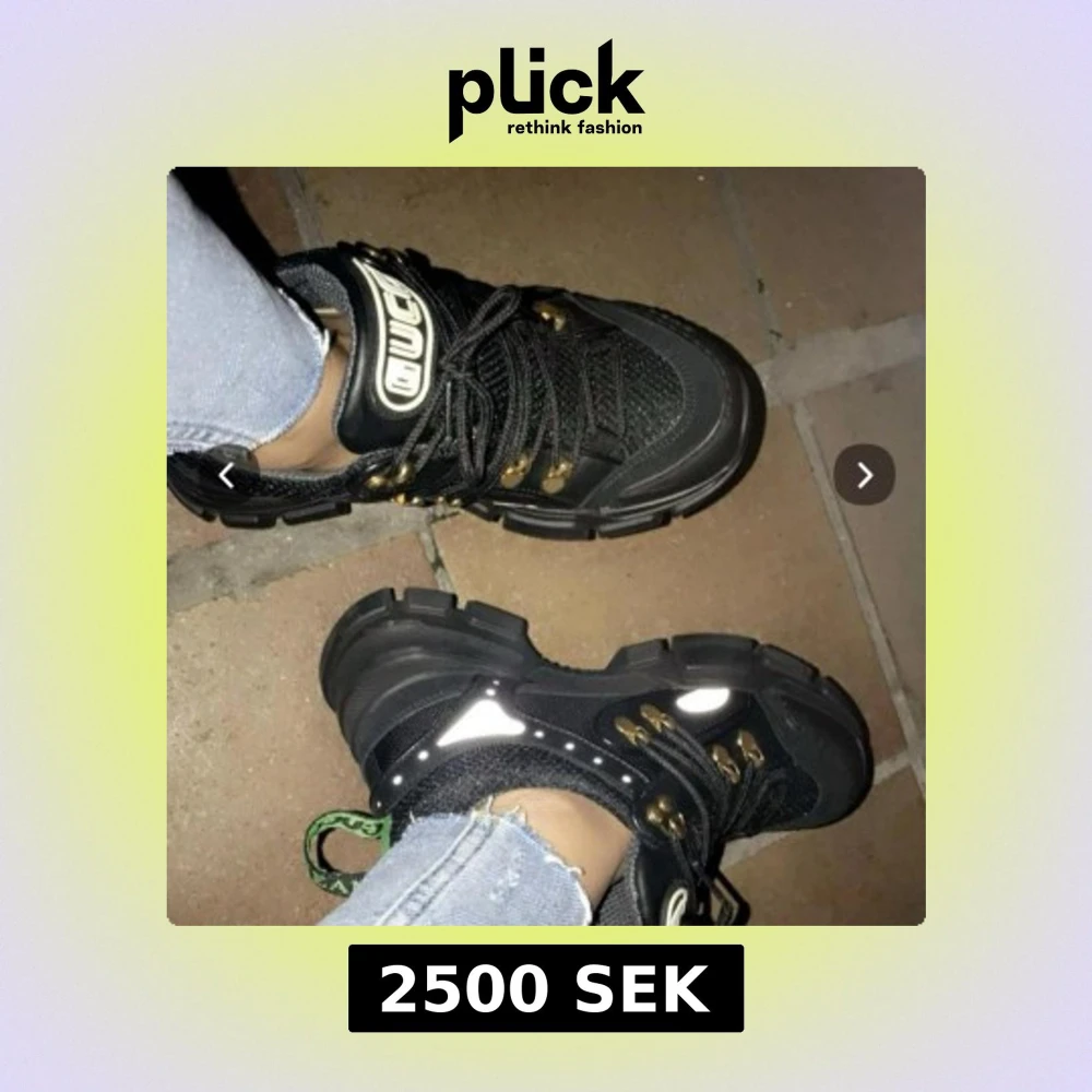 Äkta Gucci flashtrek strl 37 (jag har i vanliga fall 38, funkar på mig). Har tyvärr inte kvitto kvar därav lågt pris. Har dustbag kvar. Få defekter, sparsamt använda. Ord. Pris 8000 :-. Pris går ej att diskutera.