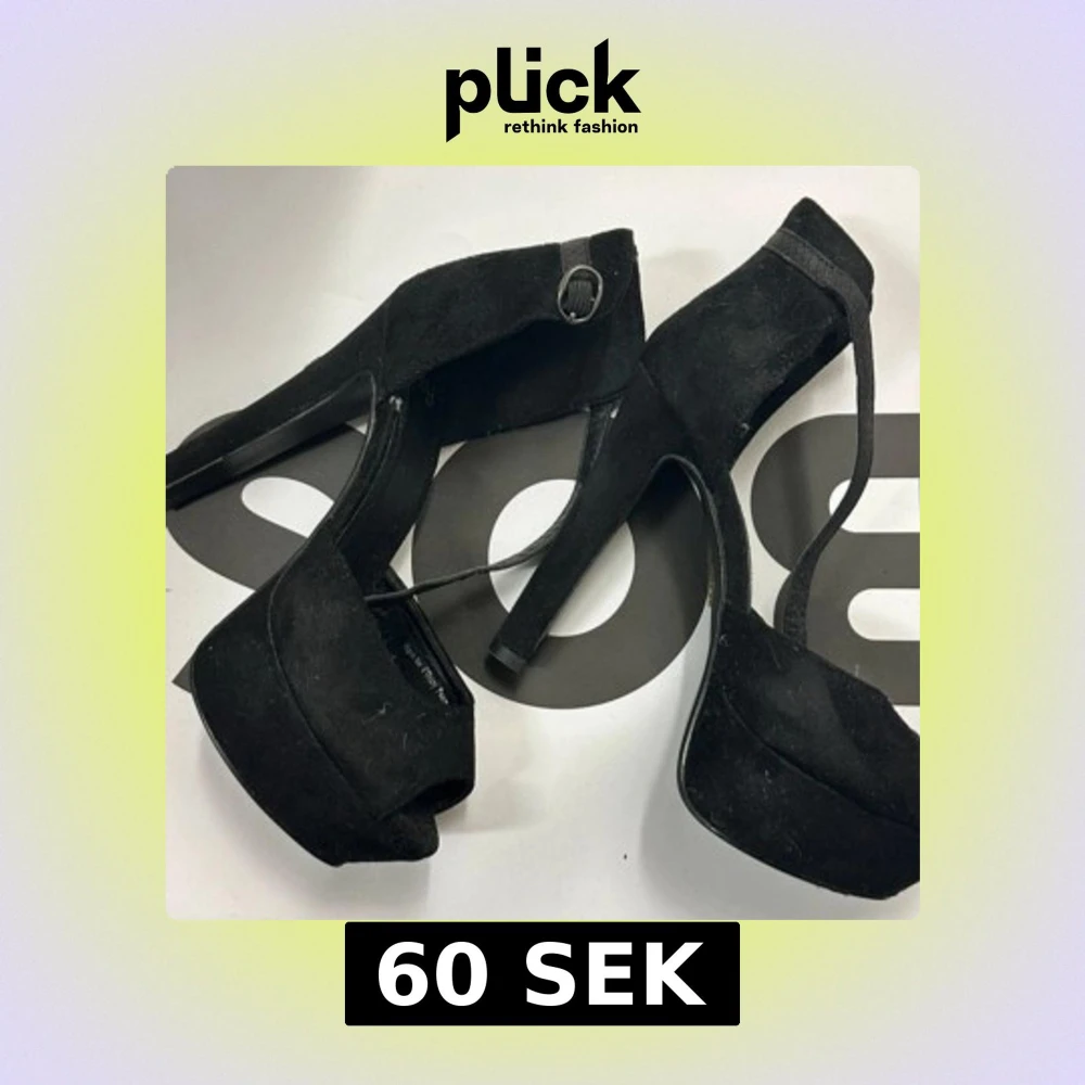 Snygga svarta pumps med hög klack och öppen tå. Skorna har en elegant rem med spänne runt ankeln för extra stil och komfort. Perfekta för en kväll ute eller en speciell tillställning.