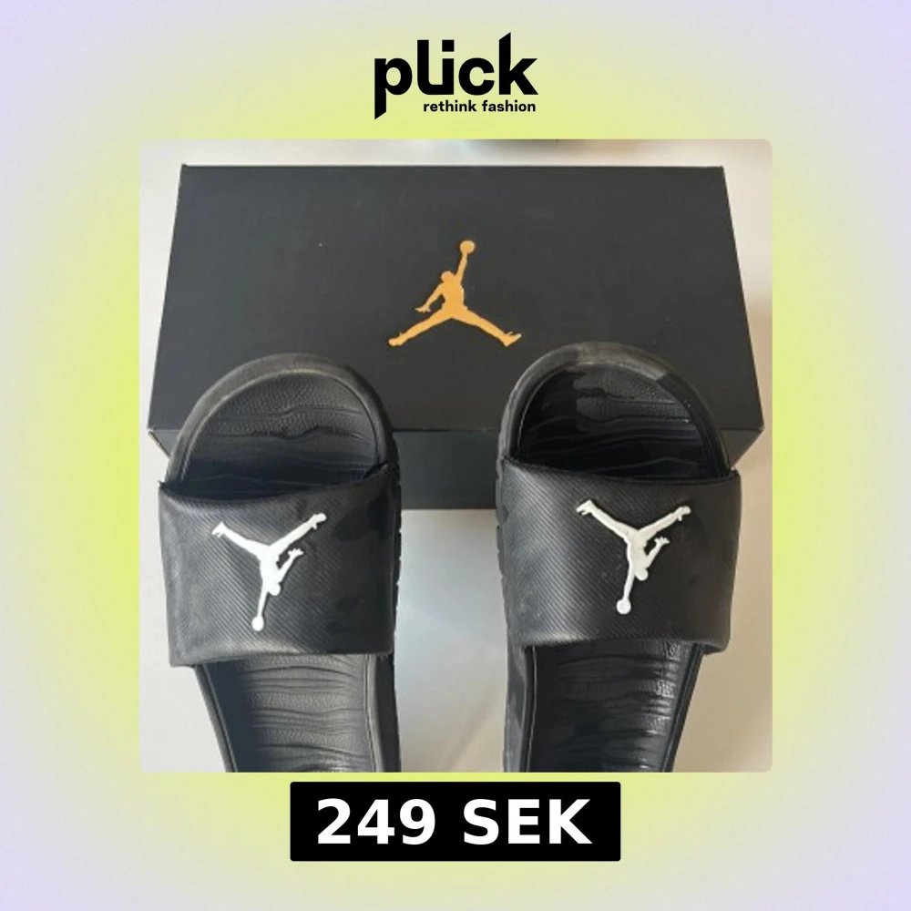 Snygga svarta Jordan tofflor Perfekta för sommaren och bekväma Kommer i originalförpackning.