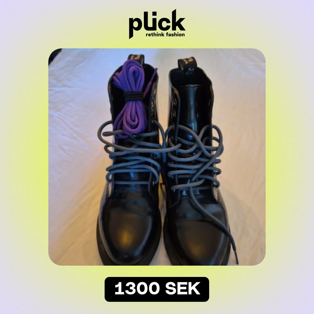 Säljer ett par svarta kängor från Dr. Martens i storlek 37. De är tillverkade i Thailand och har en klassisk design med snörning. Skorna är i skinn och kommer med extra lila skosnören. Perfekta för höst och vinter!
