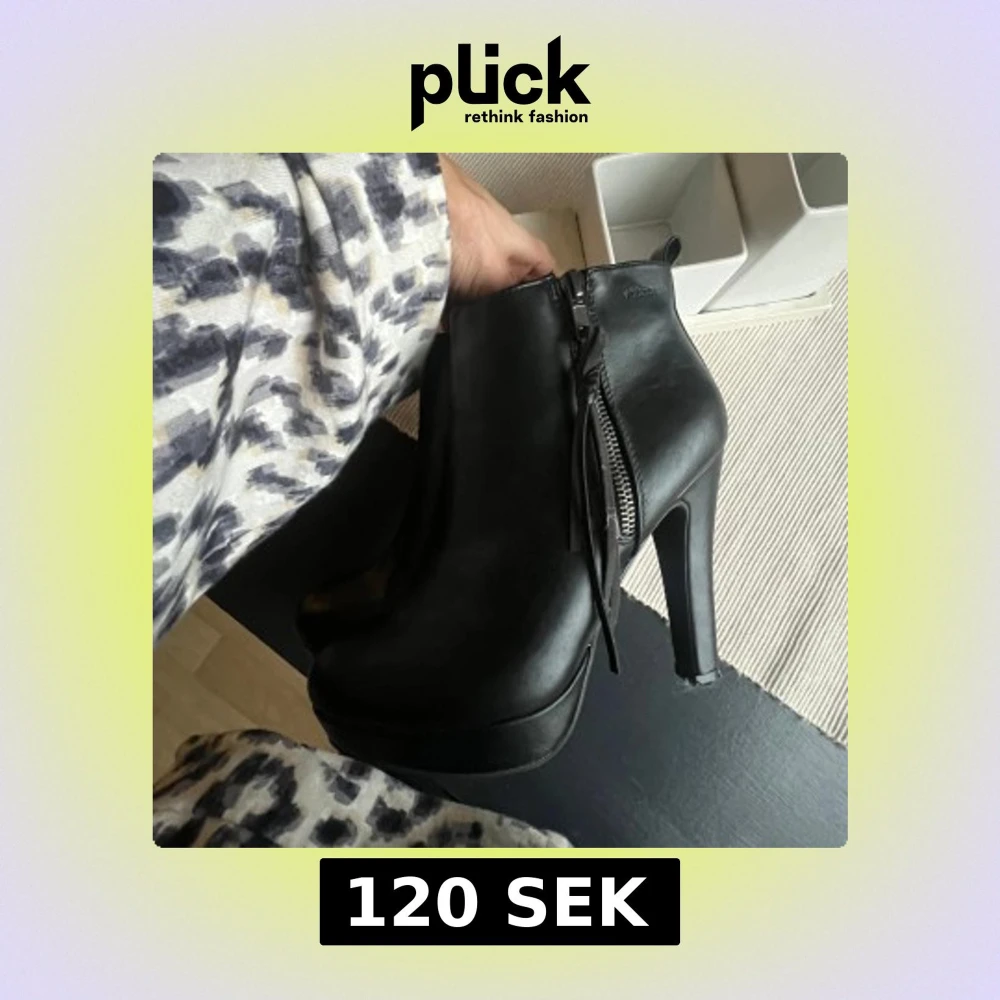 Snygga svarta boots från Attitude med hög klack och dragkedja på sidan. Dom är använda vid två tillfällen så dem är som nya. Perfekta för en stilren look.