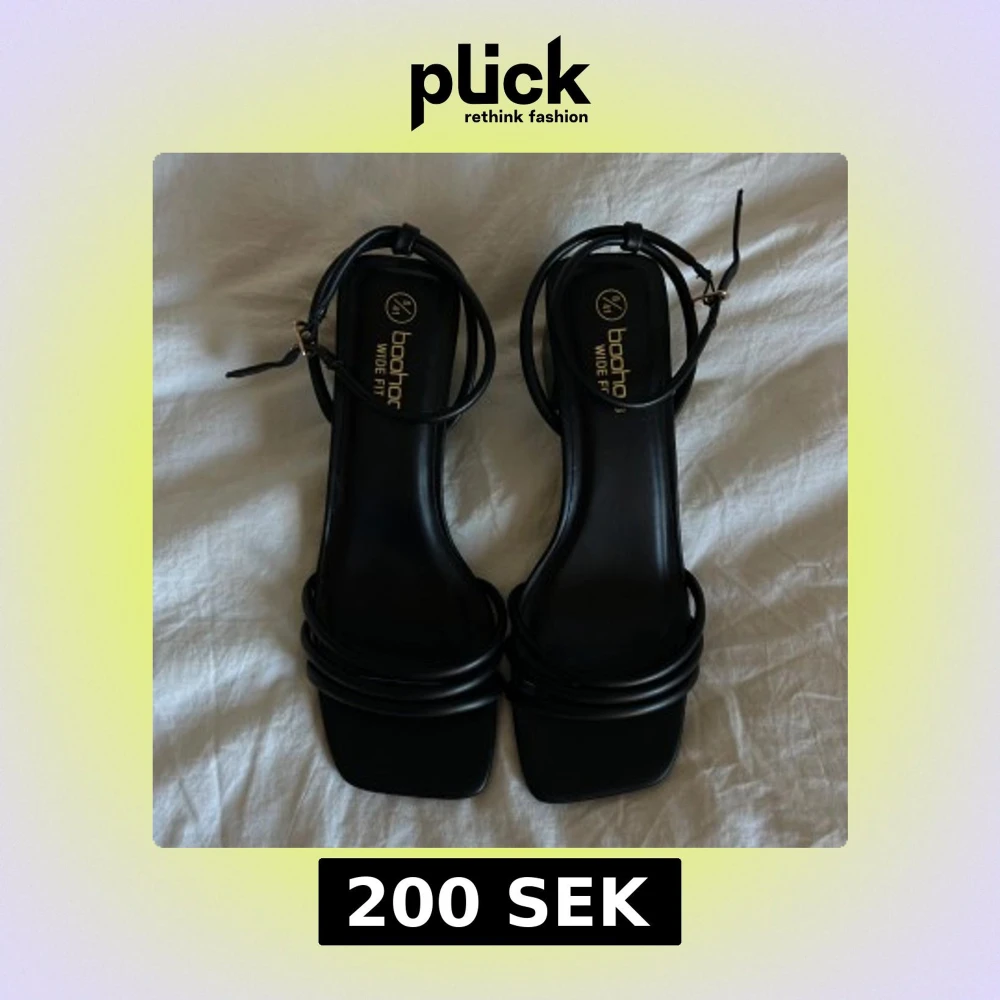 Snygga svarta klackar från Boohoo med bred passform och klack. De har en stilren design med smala remmar och en justerbar ankelrem. Orginal priset är 486kr, men jag vill gärna bli av med dom så fort som möjligt så säker för mycket billigare. Dom är endast testade men inte använda. Passar som 40 också skulle jag säga! 🫶🏼