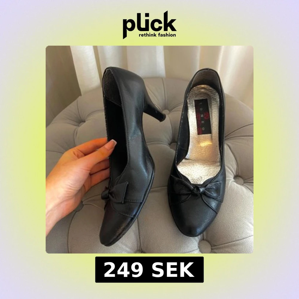 Snygga svarta pumps från Romeo i storlek 38. Skorna har en klassisk klack, rund tå och är tillverkade i skinn. Framtill sitter en söt rosett som ger extra stilpoäng. Perfekta för dig som gillar tidlös design med en feminin touch.