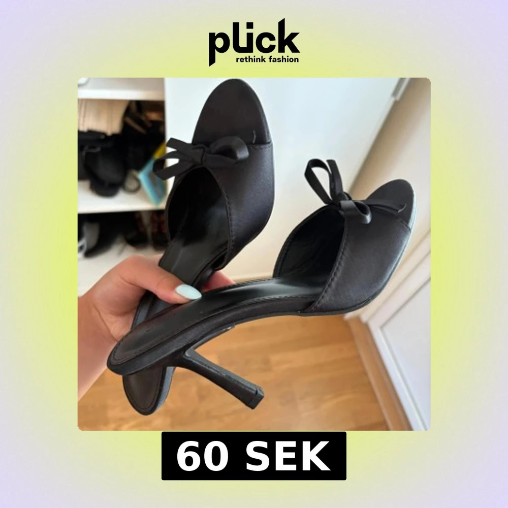 Snygga svarta pumps med öppen tå och elegant rosett framtill. Skorna har en smal hög klack och är tillverkade i ett satinliknande material som ger en lyxig känsla. Perfekta för dig som vill ha en chic och stilren look med lite extra attityd.