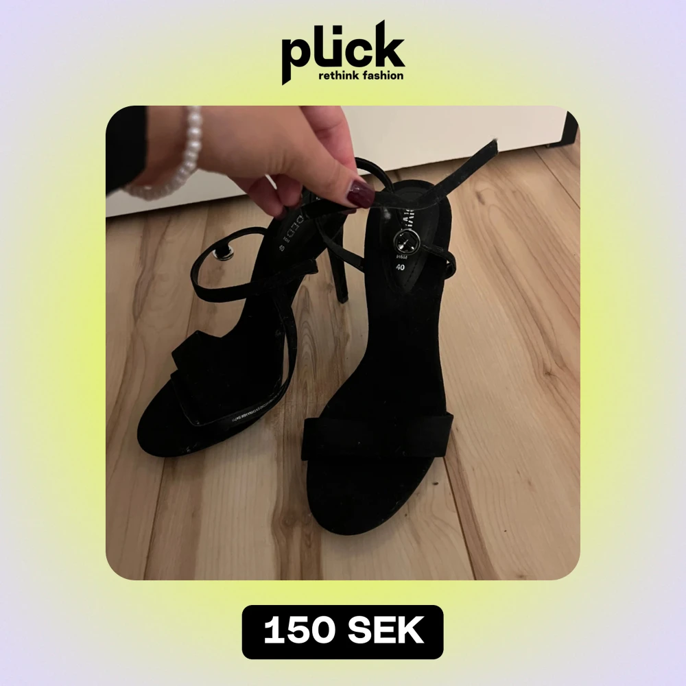 Snygga svarta klackskor från Divided i storlek 40. De har en elegant design med smala remmar och en liten rosett framtill. Perfekta för festliga tillfällen! Skorna är i bra skick och redo att användas. Passar 39 lika bra. Aldrig använda bara stått och dammat (fixar såklart vid försäljning). Inte fri frakt.