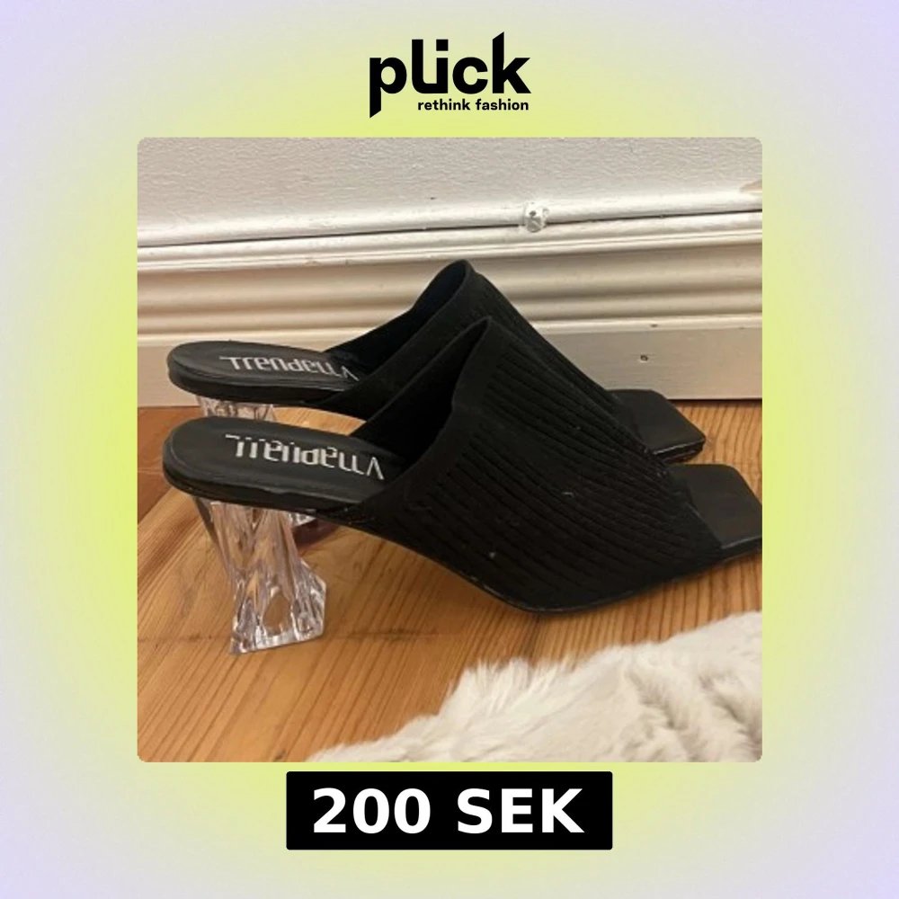Snygga svarta klackskor från Trendella med transparenta klackar. Perfekta för en stilren look. Öppen tå och slip-on design gör dem både trendiga och bekväma.