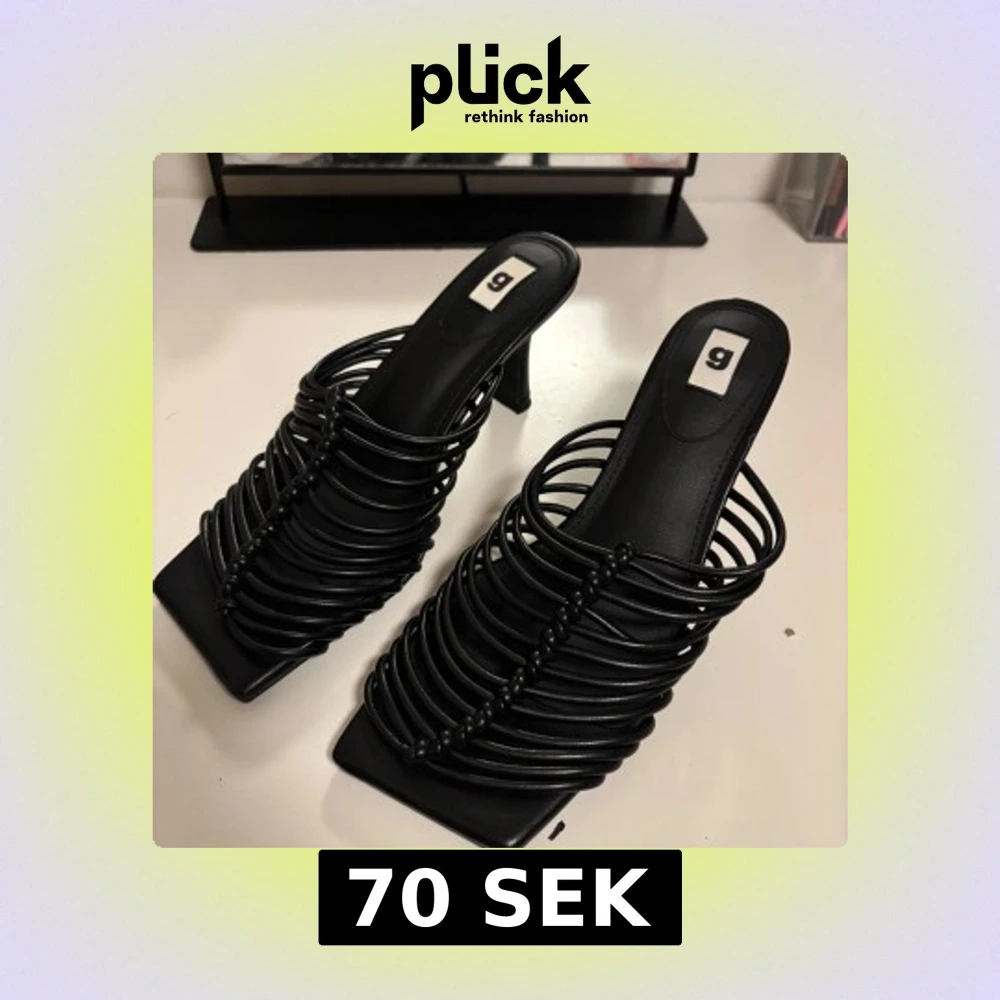 Snygga svarta klackskor med unika remmar som ger en modern look. Skorna har en fyrkantig tå och en bekväm klackhöjd, perfekt för att lyfta din stil.