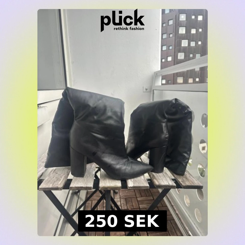 Säljer ett par svarta knähöga boots med hög klack och spetsig tå. Skorna är tillverkade i mjukt skinn och dem är väldigt bekväma och håller värme!