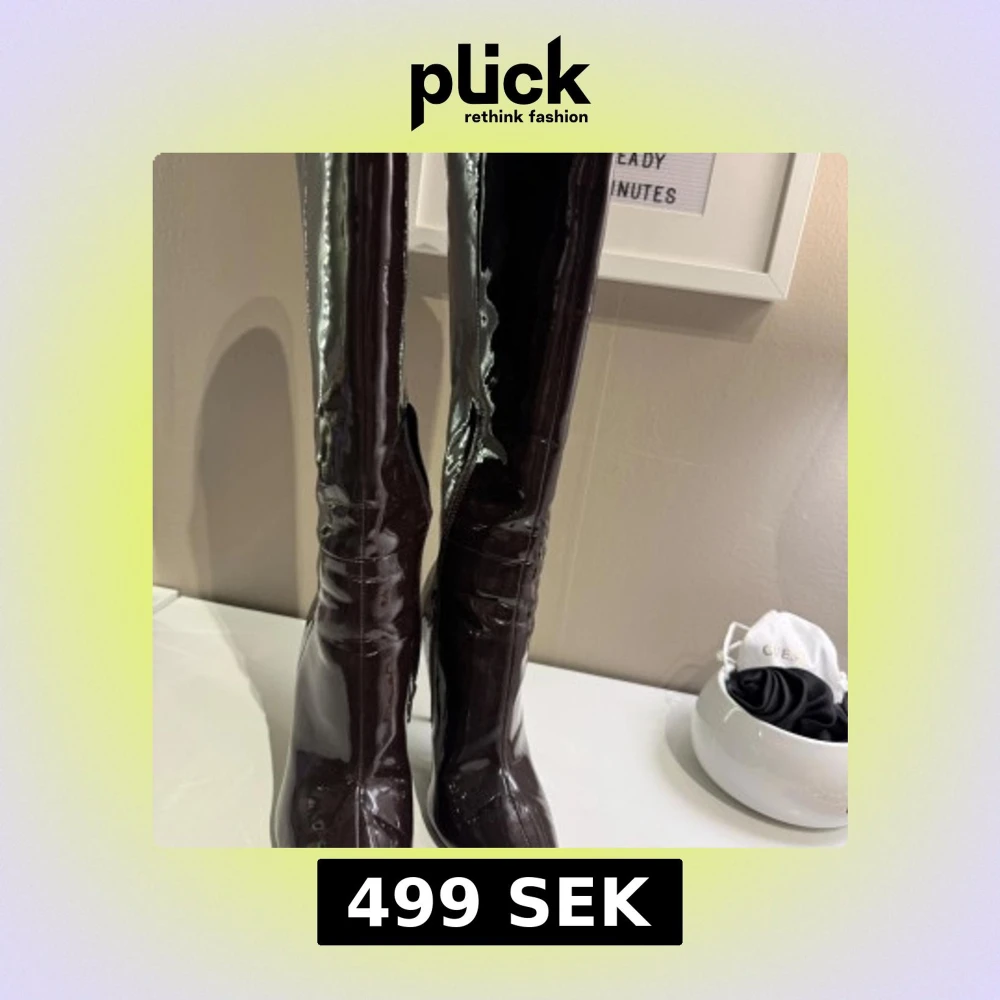 Snygga mörkbruna stövlar med hög klack och spetsig tå. Perfekta för en elegant look. Klackhöjd 10,5 cm Dem är jätte sköna att gå med. Köpta på Zalando i november 2024.