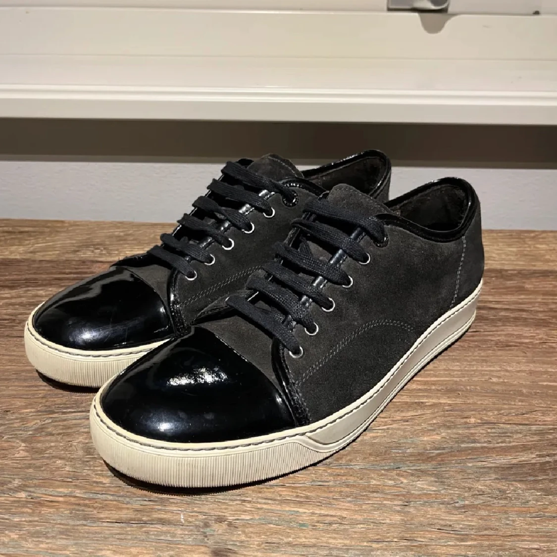 Svarta lanvin i storlek uk 9, box ingår. Bra skick cap toen har nåt litet slip märkte men annars är den fel fri
