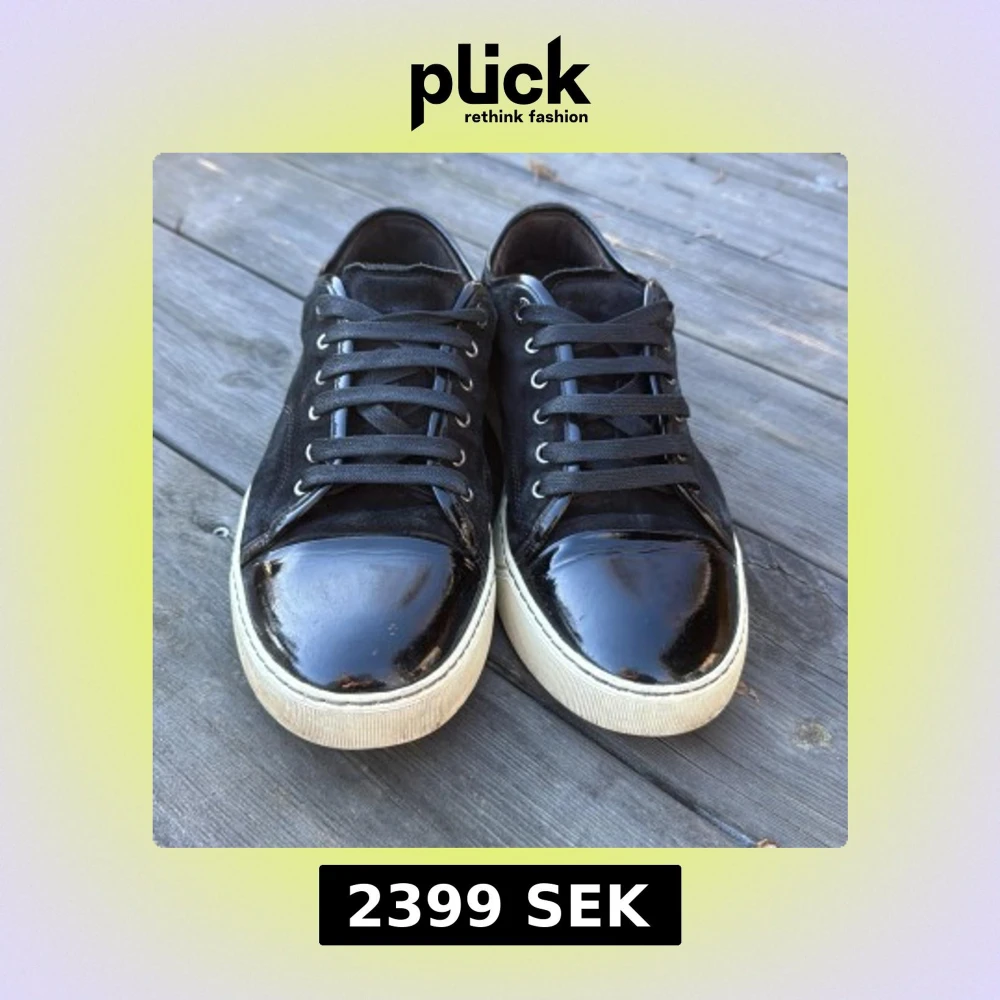 Snygga svarta sneakers från Lanvin med glansig tå och snörning. Skorna har en vit sula och är perfekta för en stilren look.