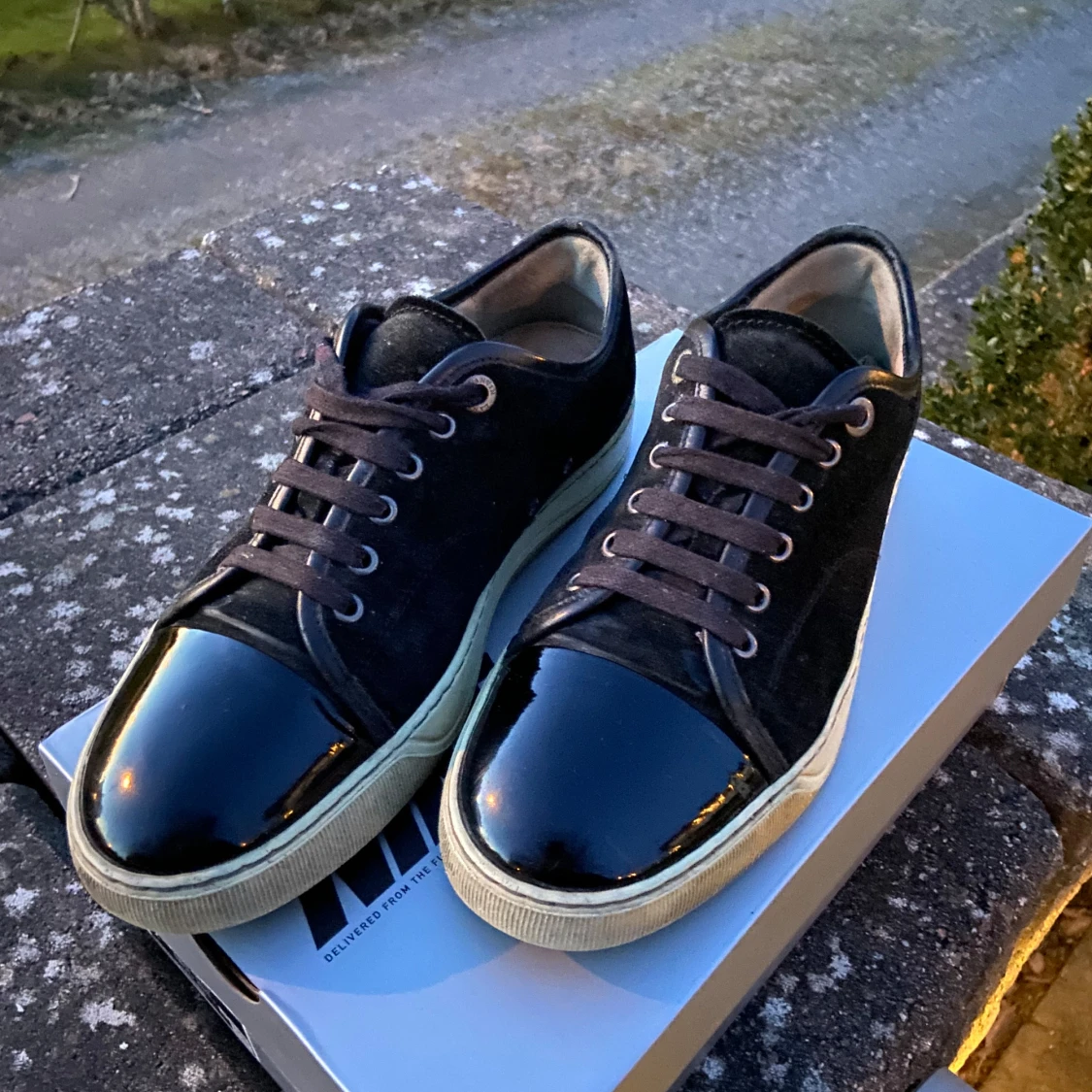 Tjenare! Jag säljer dessa lanvins i bra skick! Den enda defekten är undersidan av skon men det går att laga ganska billigt, jag tar byten mot andra skor i samma prisklass