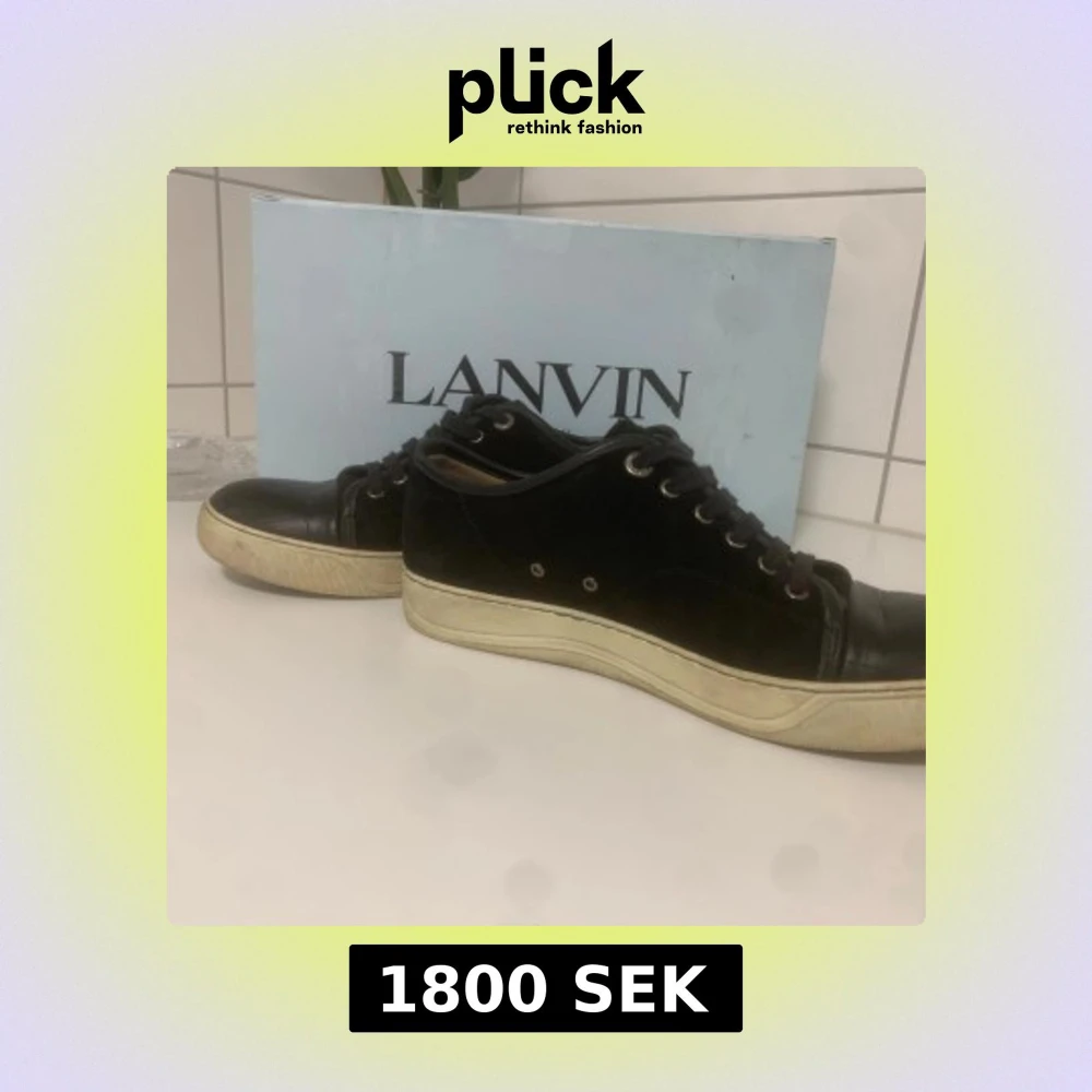 Snygga svarta sneakers från Lanvin med ovandel i mocka och detaljer i skinn. Klassisk rund tå, svarta snören och vit platt sula som ger en clean look. Tillverkade i Portugal och levereras med originalkartong. Pris kan diskuteras💸