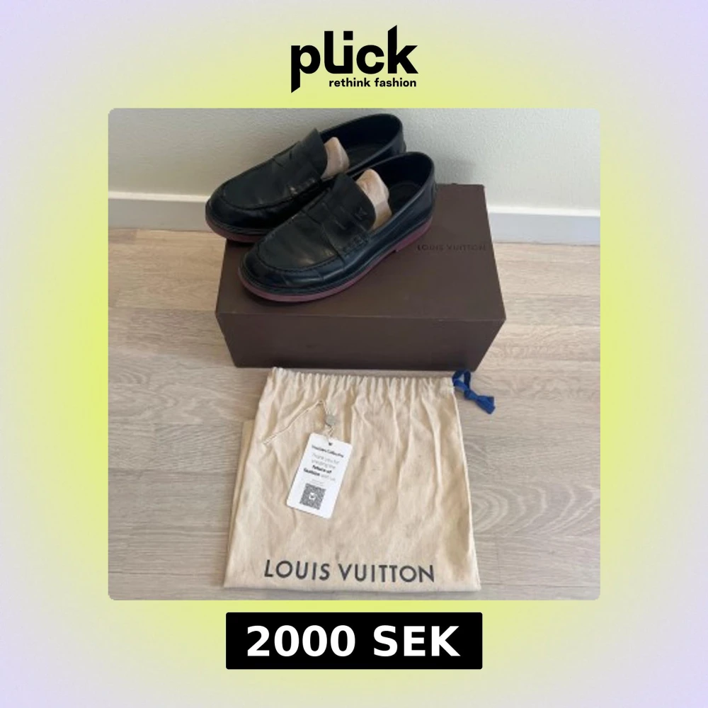 Snygga svarta loafers från Louis Vuitton i skinn. Skorna har en klassisk design med märkets logotyp diskret placerad på ovansidan. Kommer med dust bag, kartong och äkthetsbevis!