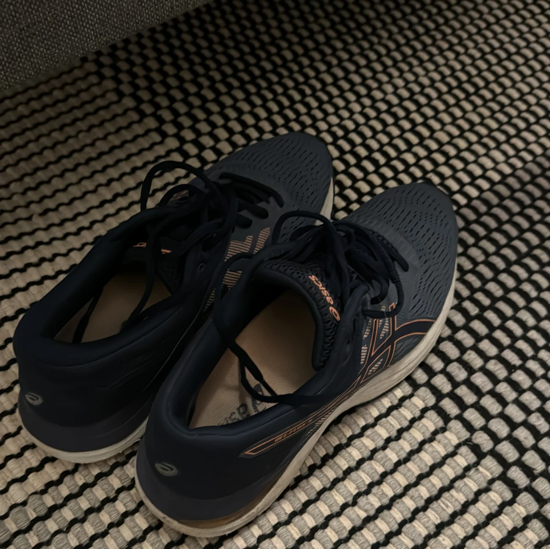 Säljer ett par svarta löparskor från Asics med snygga orange detaljer. Hör av er vid intresse! Pris går att diskutera vid snabb affär!!