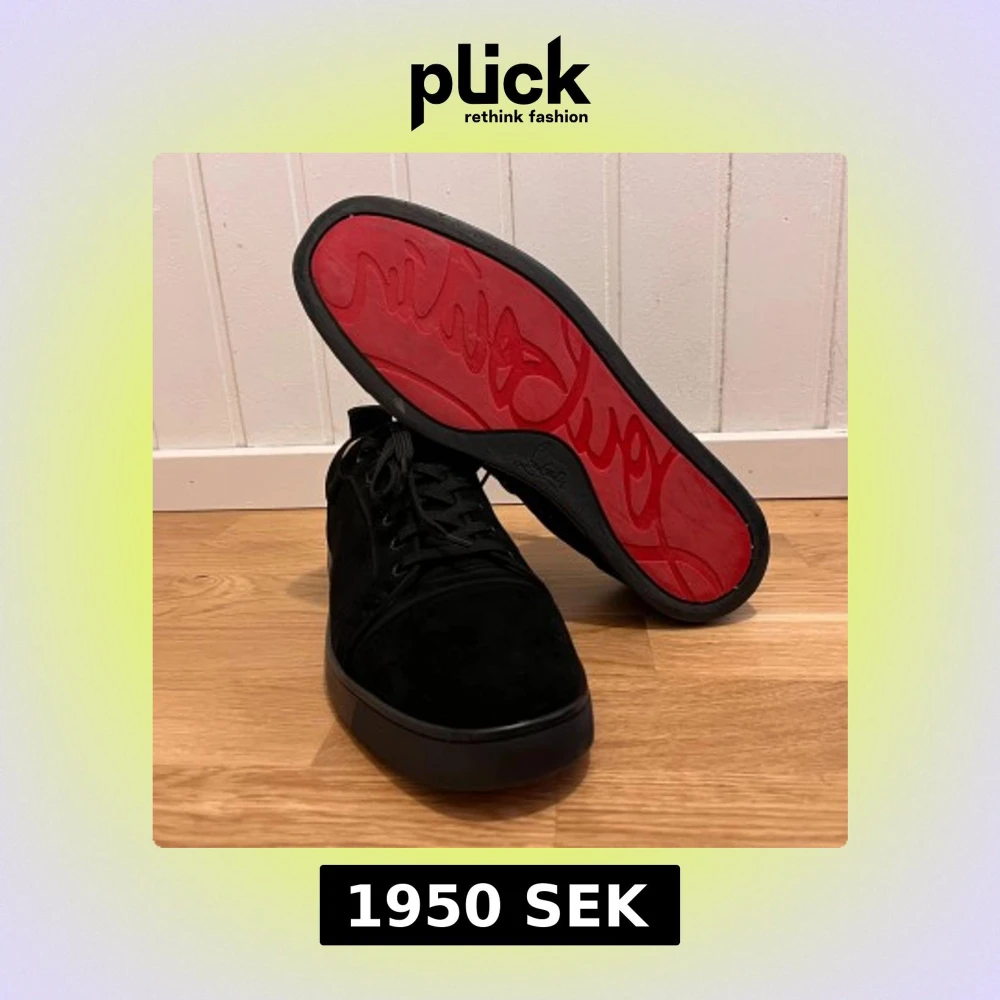 Snygga svarta sneakers i mocka med ikonisk röd sula. Skorna har snörning och en stilren design som passar perfekt för en trendig look. Perfekta för dig som vill ha något unikt i garderoben.