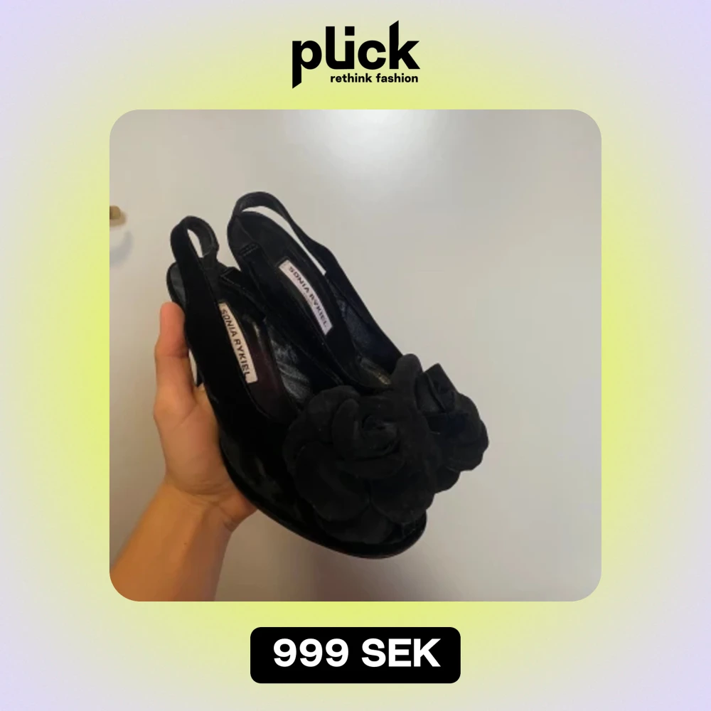 Vintage klackar i tjock mocka med ros från Sonia Rykiel