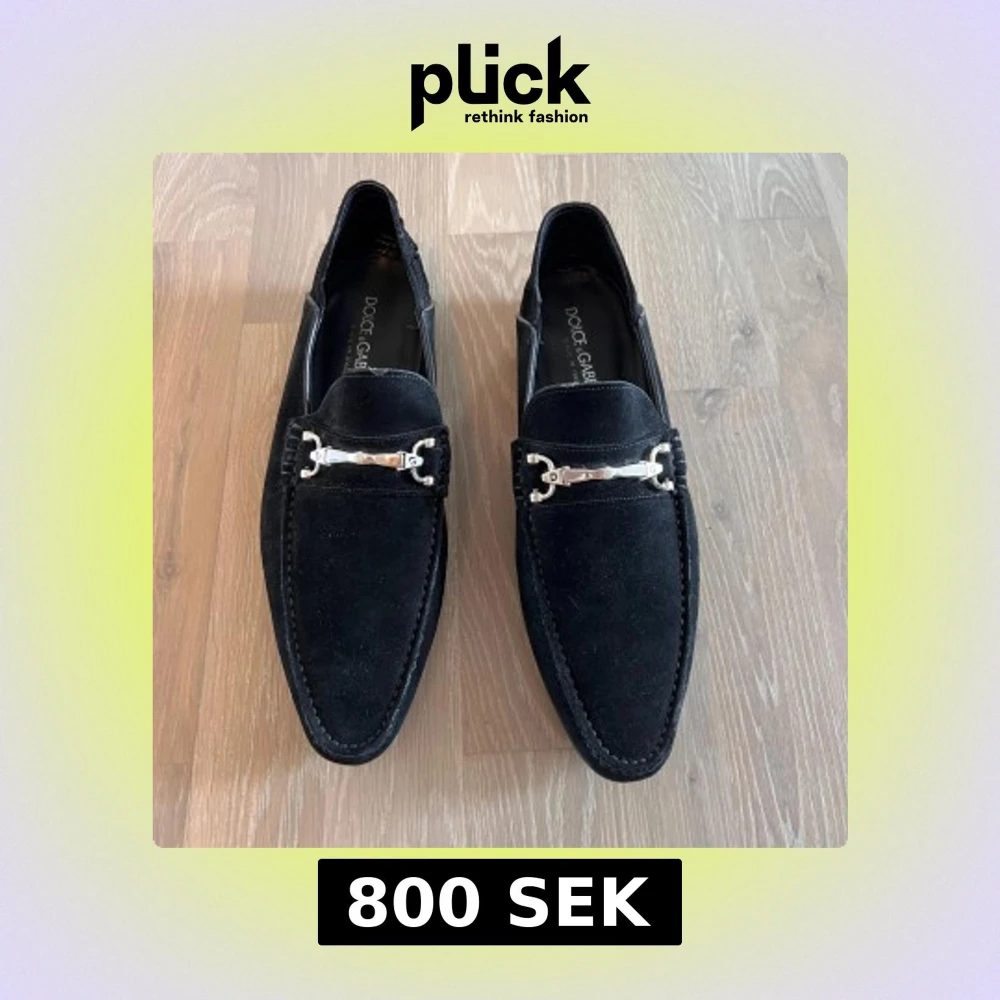 Snygga svarta loafers från Dolce & Gabbana i mjuk mocka med silverfärgad metallspänne framtill. Skorna har spetsig tå och klassisk design som passar perfekt till både dressade och avslappnade outfits. Det är bara att skriva om ni har frågor.