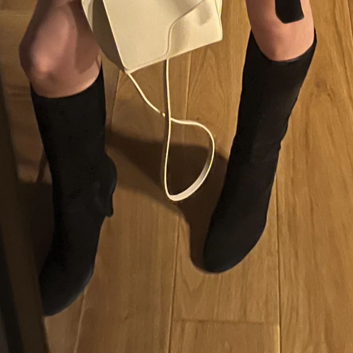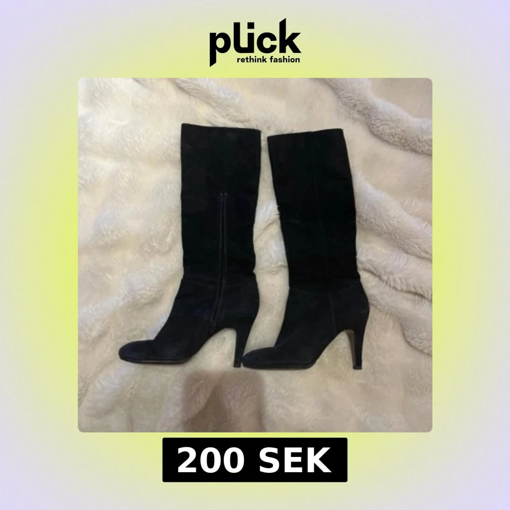 Snygga svarta stövlar från indiska i mjuk mocka med hög klack och rund tå. Stövlarna har dragkedja på insidan och en stilren, klassisk look som passar till många outfits. Perfekta för dig som vill ha en elegant siluett och gillar boots med lite höjd.