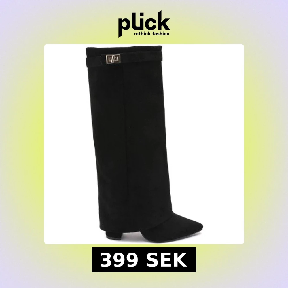Så snygga och stilrena svarta stövlar i mocka med spetsig tå och klack. Snygg detalj med ett smalt band och metallspänne upptill. Från Lululia 😍 endast använda max 3 ggr då de inte passar mig så bra ❤️ kan skicka fler bilder privat. Lite dammiga då de bara stått oanvända men går lätt att tvätta rent 🥰