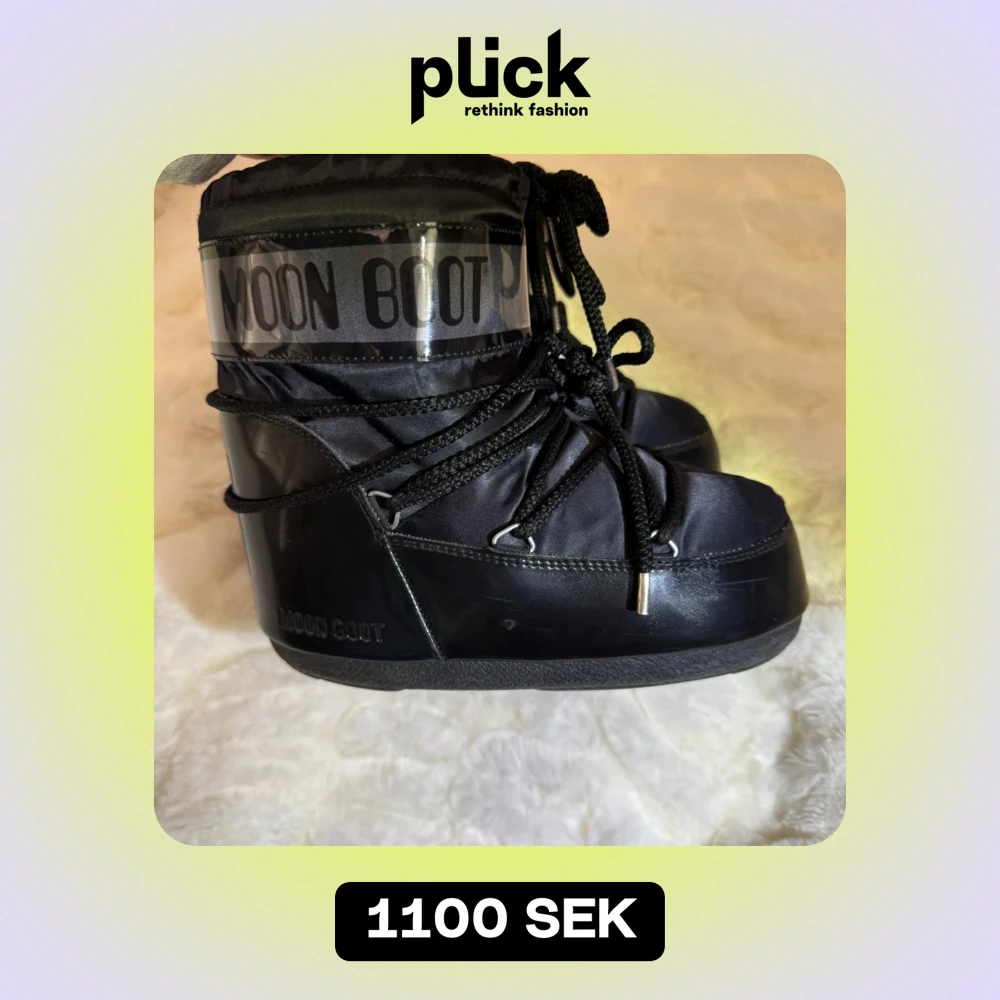 Säljer ett par svarta låga Moon Boots i glansig design. Mycket bra skick.Nypris 2099kr❄️ Storlek 36- 38 (passar 35 -37) Perfekta för att hålla fötterna varma och torra i snön!