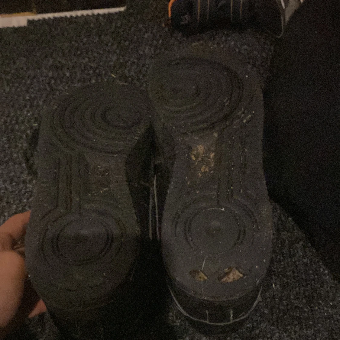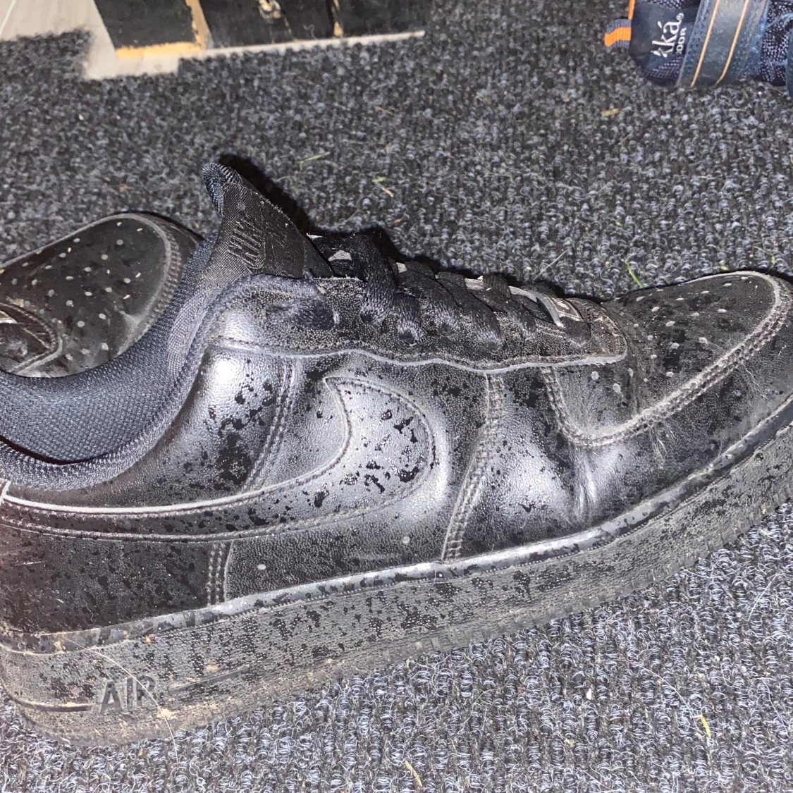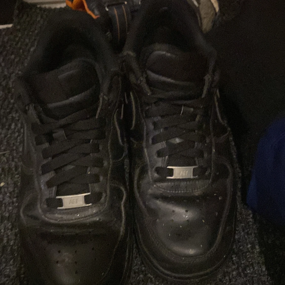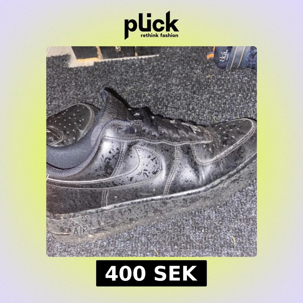 Dem är slitna. Säljer ett par klassiska svarta Nike Air Force 1 sneakers med låg profil. Skorna har snörning, perforerad tå och platt sula. Tillverkade i skinn med detaljer i textil runt ankeln. Snygg och tidlös design som alltid funkar.