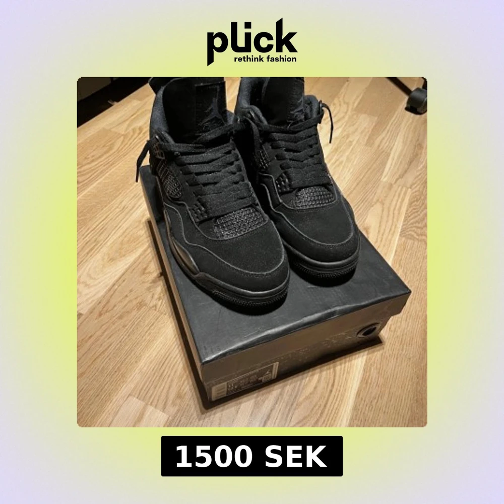 Säljer ett par svarta Nike Air Jordan 4 Retro SE. Skorna har en stilren design med snörning och är tillverkade i syntetmaterial. Perfekta för sneaker-entusiaster som vill ha en klassisk look. Inga defekter, använde 1 gång. Säljer pga att de inte passar mig.