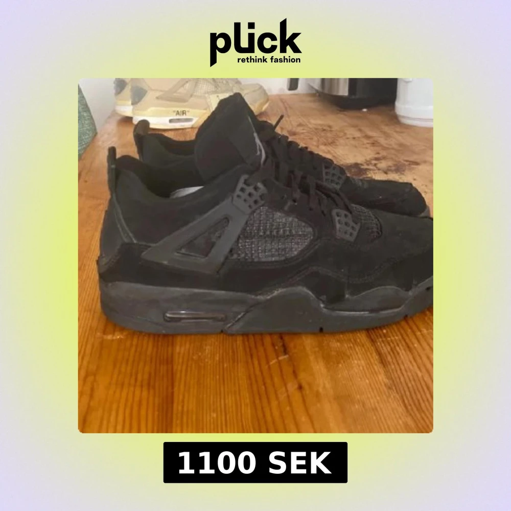 Säljer ett par svarta Nike Air Jordans med snörning och ikonisk design. Skorna har en robust sula och detaljer i syntetmaterial. Perfekta för dig som älskar klassiska sneakers med en modern touch.