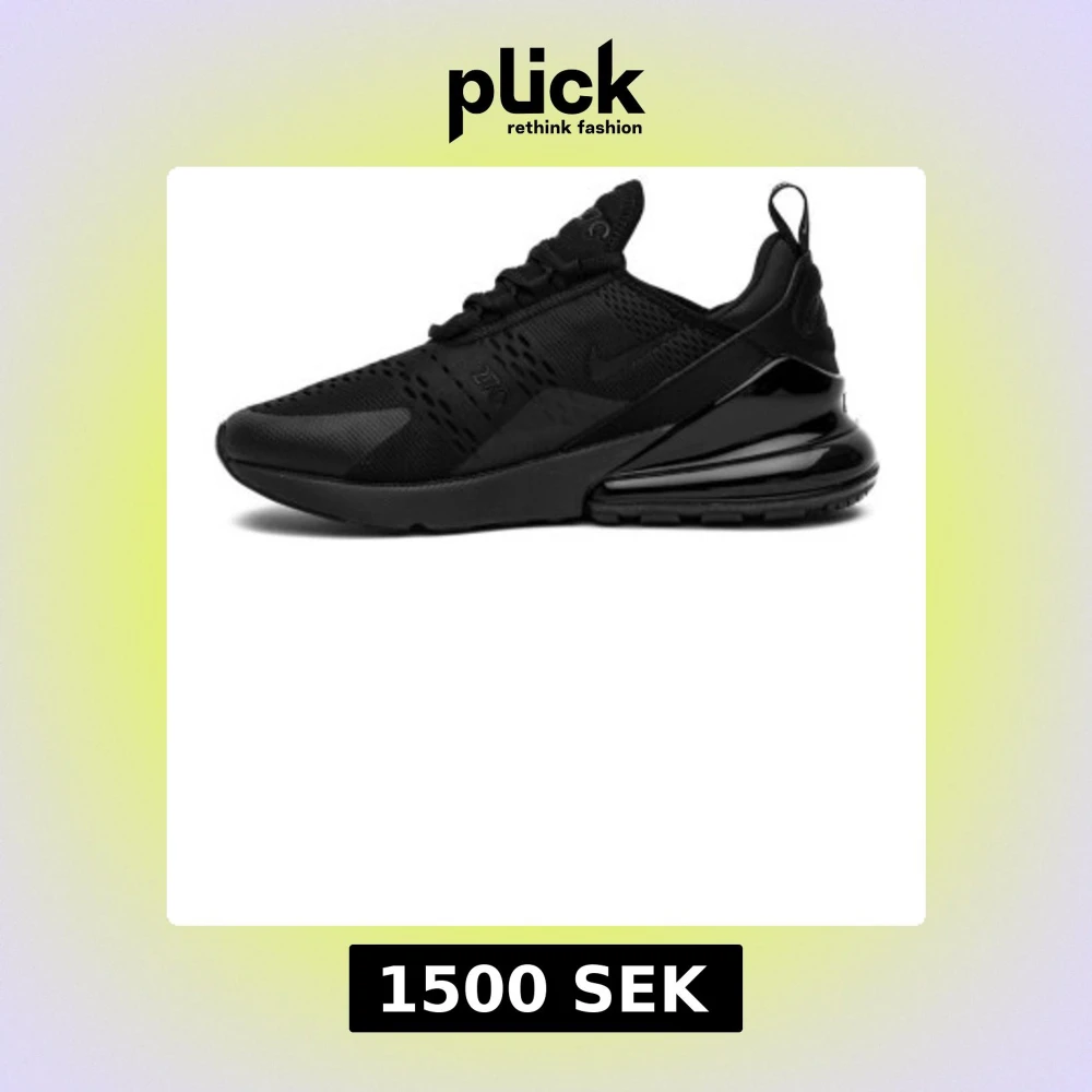 Snygga helsvarta Nike Air Max 270 sneakers med luftig mesh, synlig Air Max-dämpning i hälen och klassisk snörning. Skorna har en modern siluett och passar perfekt för dig som gillar streetstyle och sportig look. Helt nya