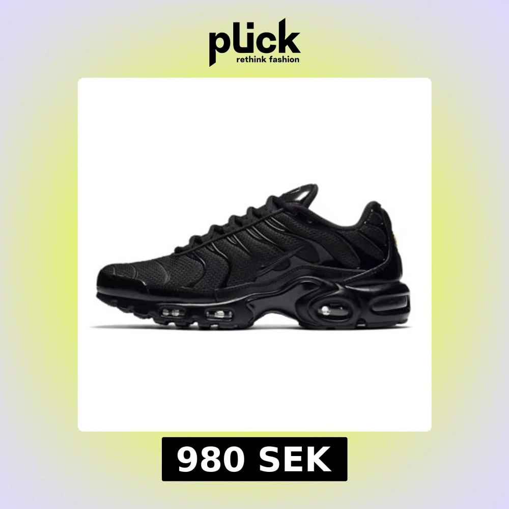 Snygga helsvarta Nike Air Max Plus sneakers med mesh- och syntetöverdel, ikoniska vågformade detaljer och synlig Air-dämpning i sulan. Perfekta för dig som vill ha en sportig och stilren look med maximal komfort. De är ej använda och är prillans nya