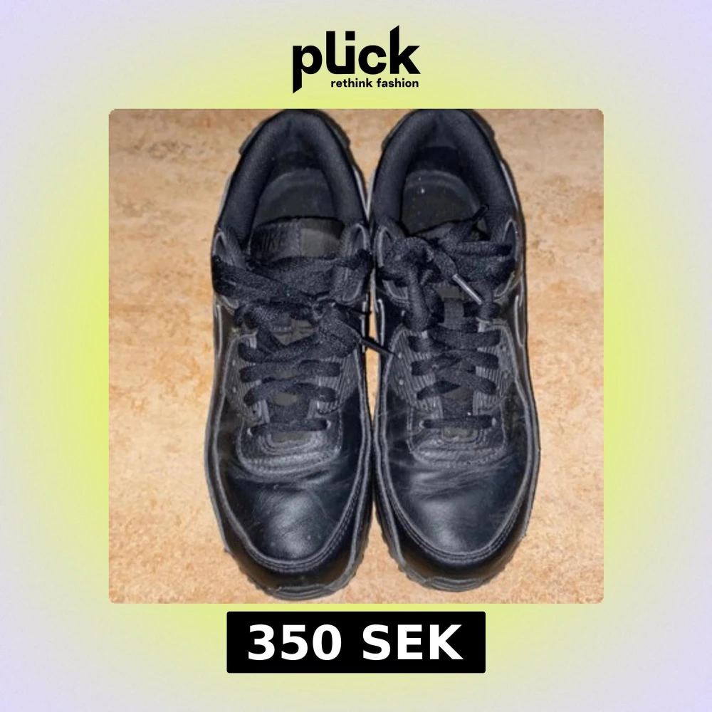 Säljer ett par svarta Nike Air Max sneakers med klassisk design och snörning. Skorna har en robust sula och är perfekta för en sportig look.