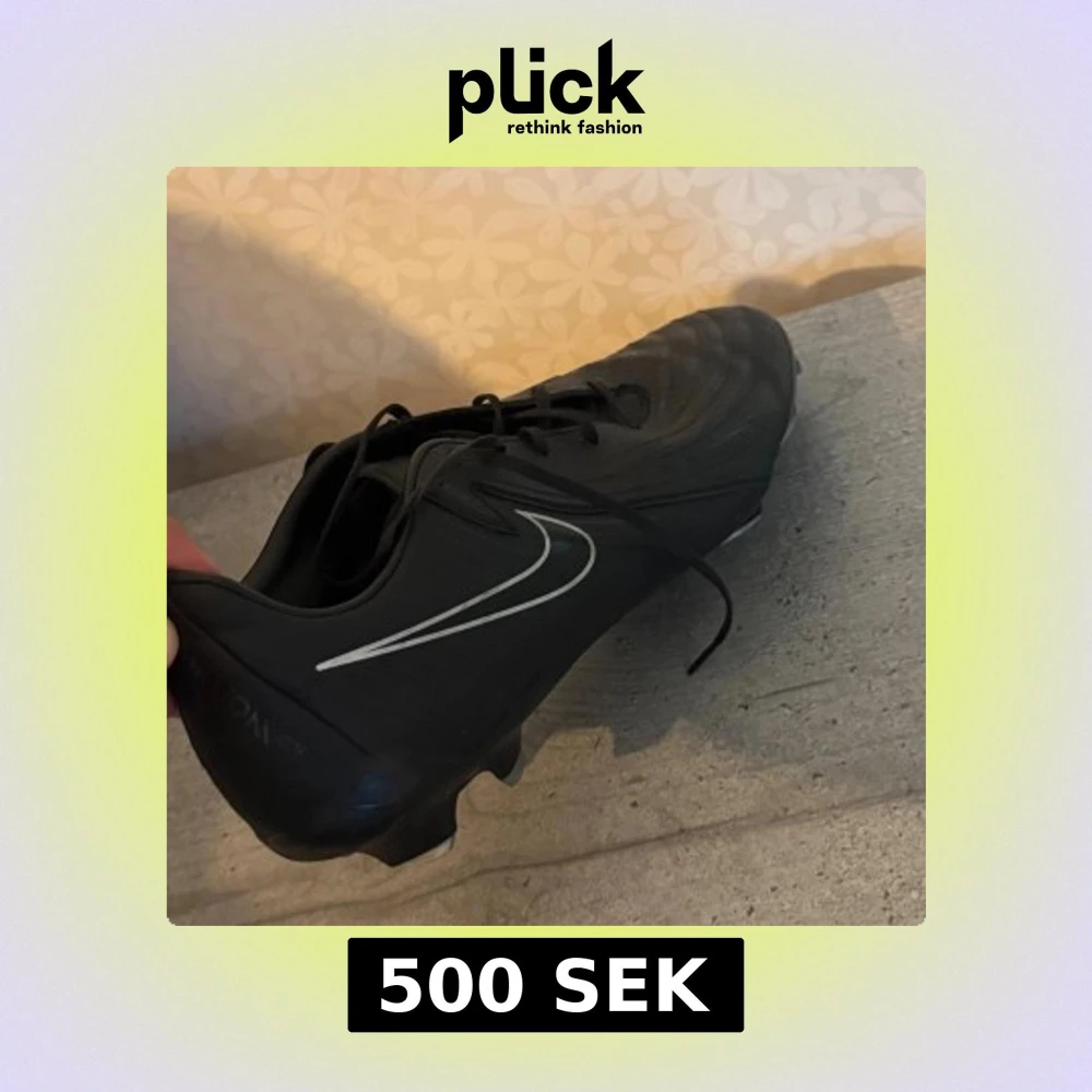 Säljer ett par svarta Nike fotbollsskor med vit swoosh på sidan. Skorna har snörning och slitstark syntetöverdel samt dobbar för bra grepp på planen. Perfekta för dig som vill ha stilrena och funktionella skor till match eller träning. Man märker inte att de är använda eller något, säljer de för jag köpte för små och kunde inte returnera eftersom kvittot slängdes. Så använde de ett par gånger men helt nya.